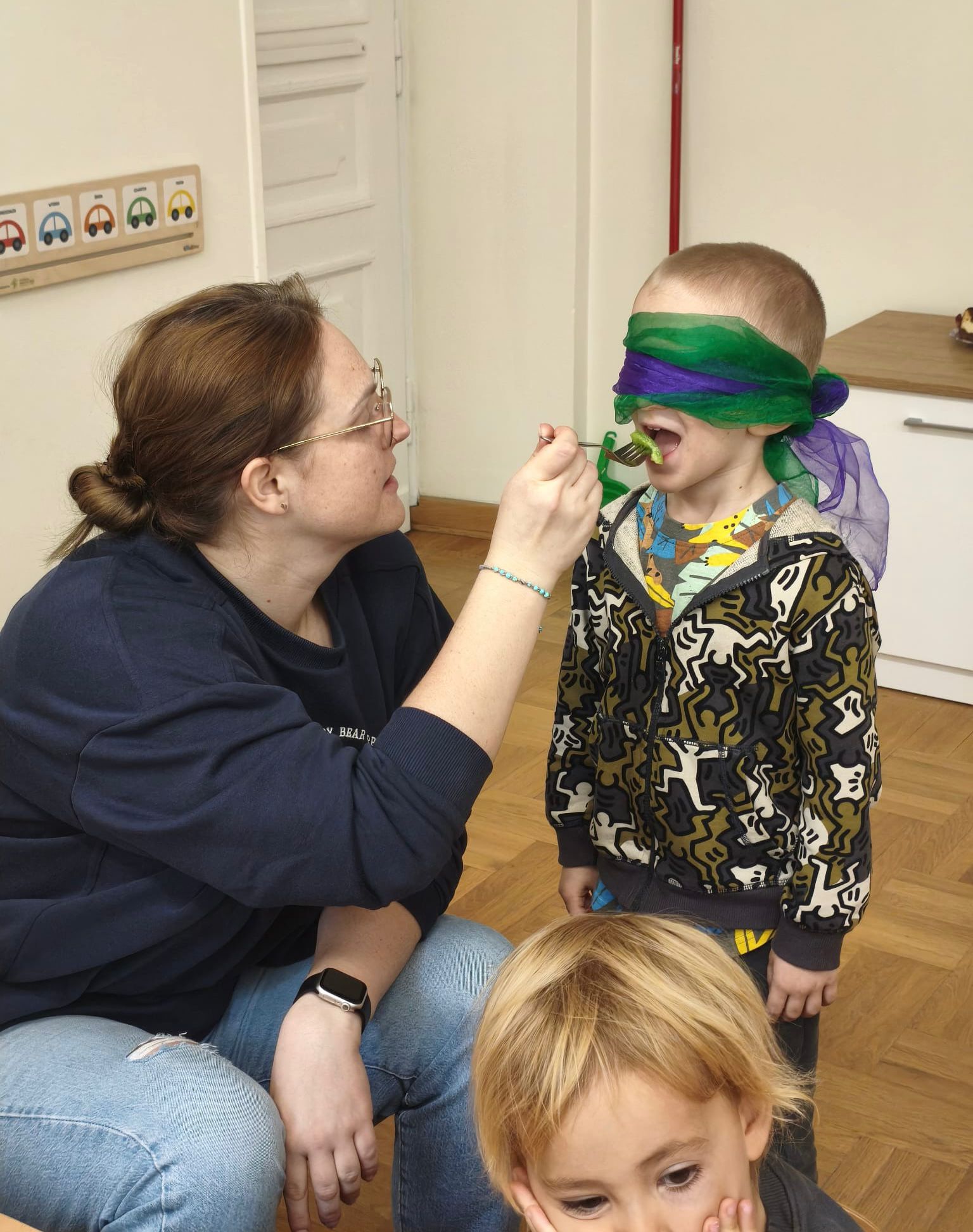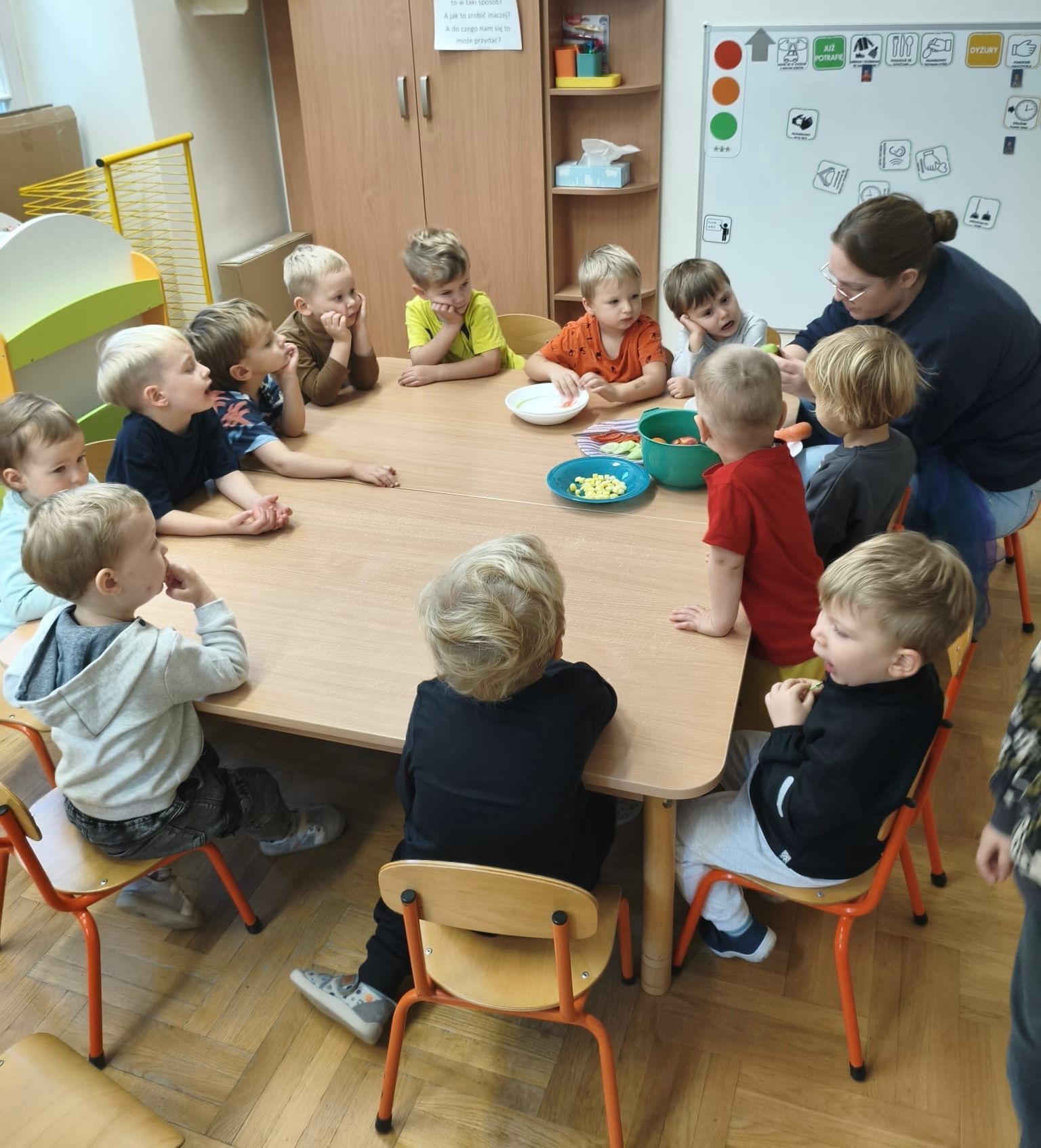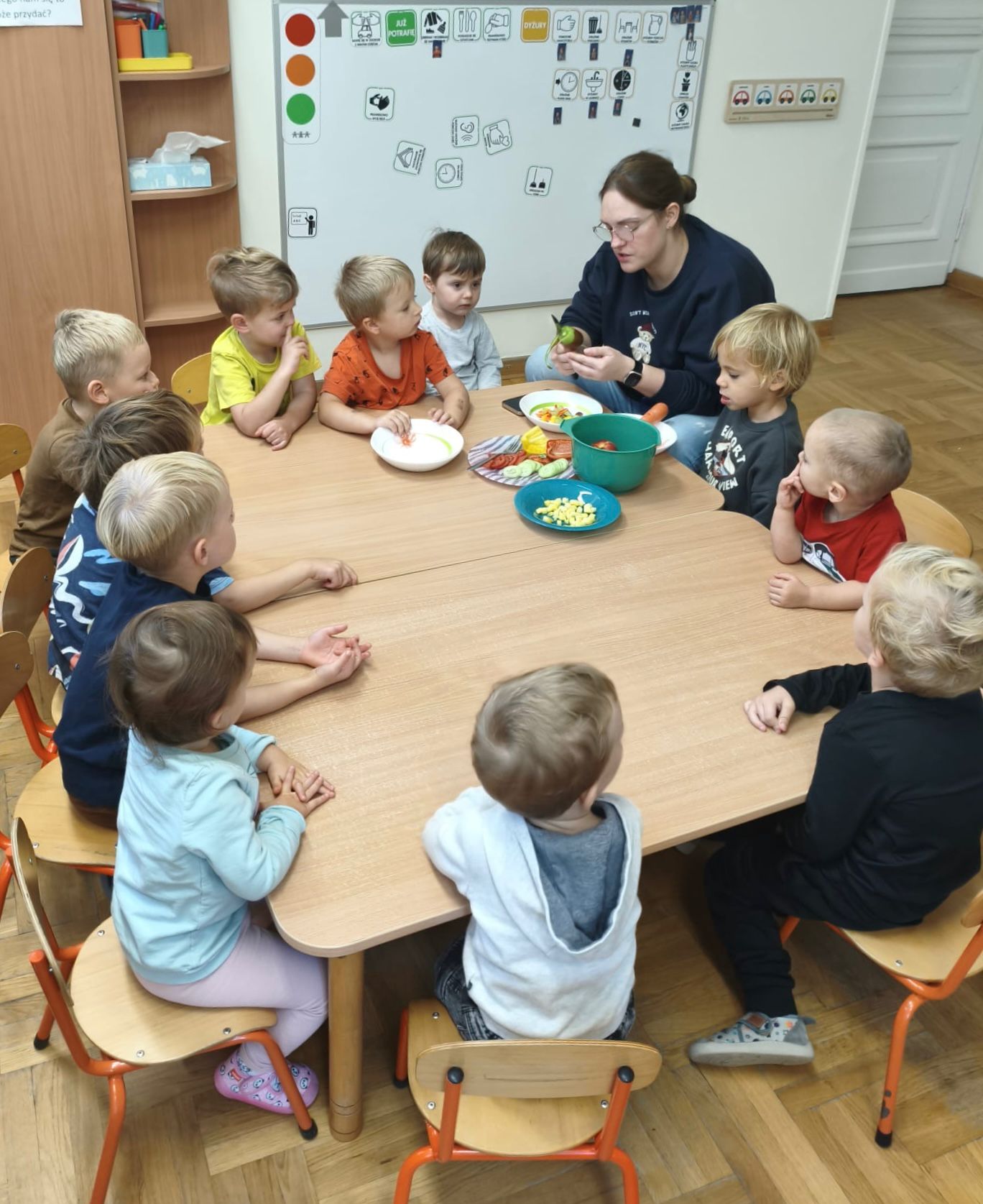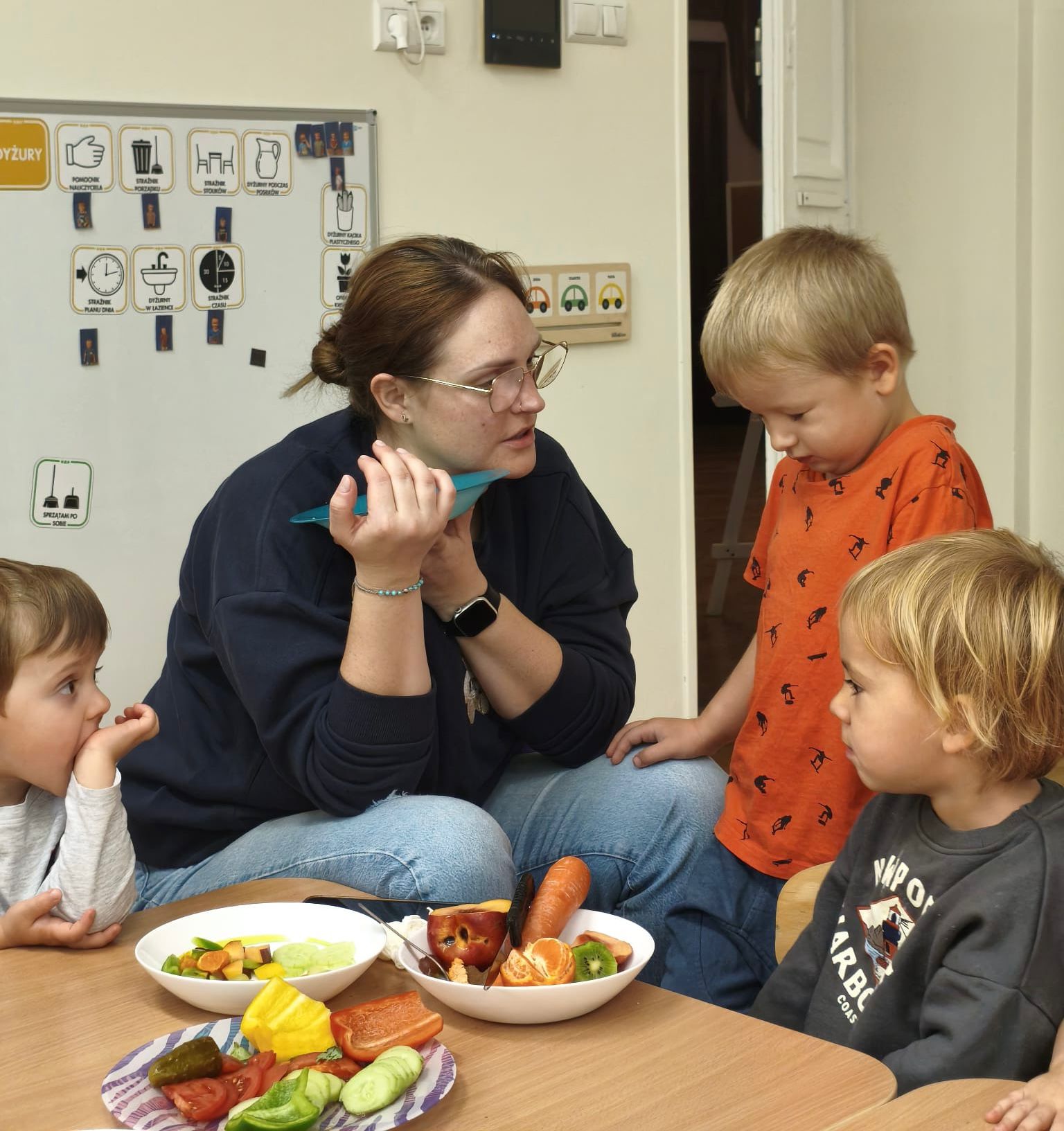 To była prawdziwa przygoda dla zmysłów! Niektóre dzieci odważyły się spróbować produktów, których wcześniej nawet nie dotykały na śniadaniu. Zajęcia okazały się świetną zabawą i nauką jednocześnie — po degustacji maluchy chętnie sięgały po kolejne smaki i z radością dzieliły się nimi z innymi.