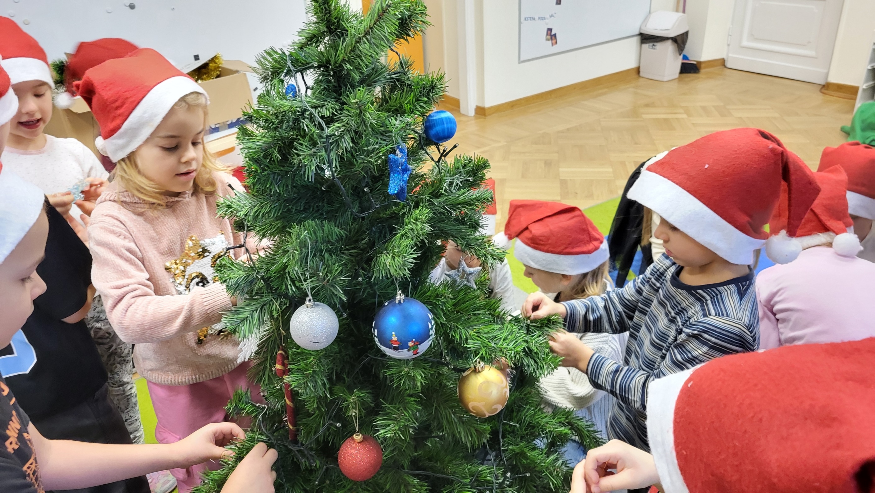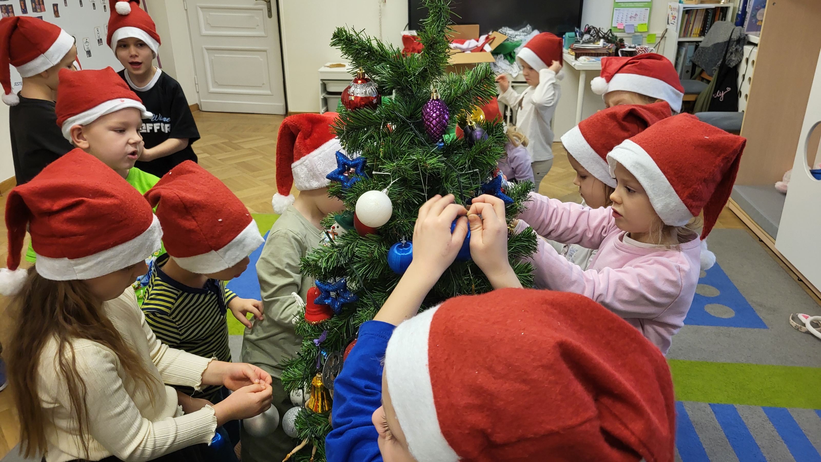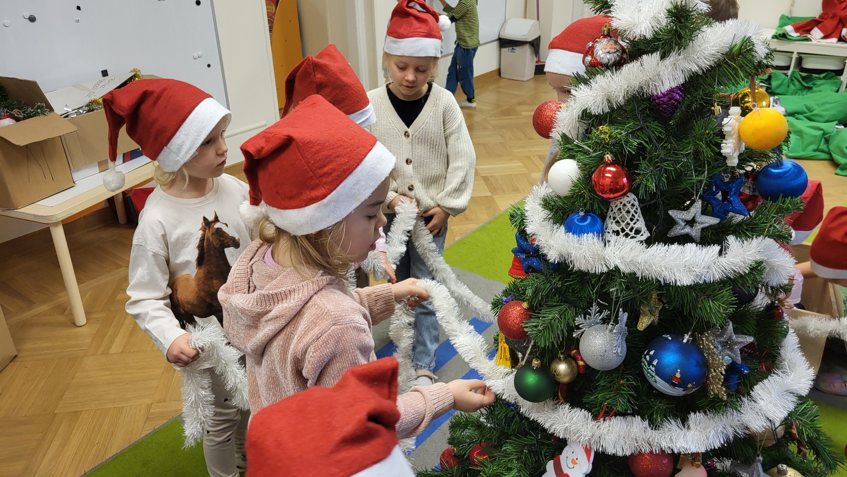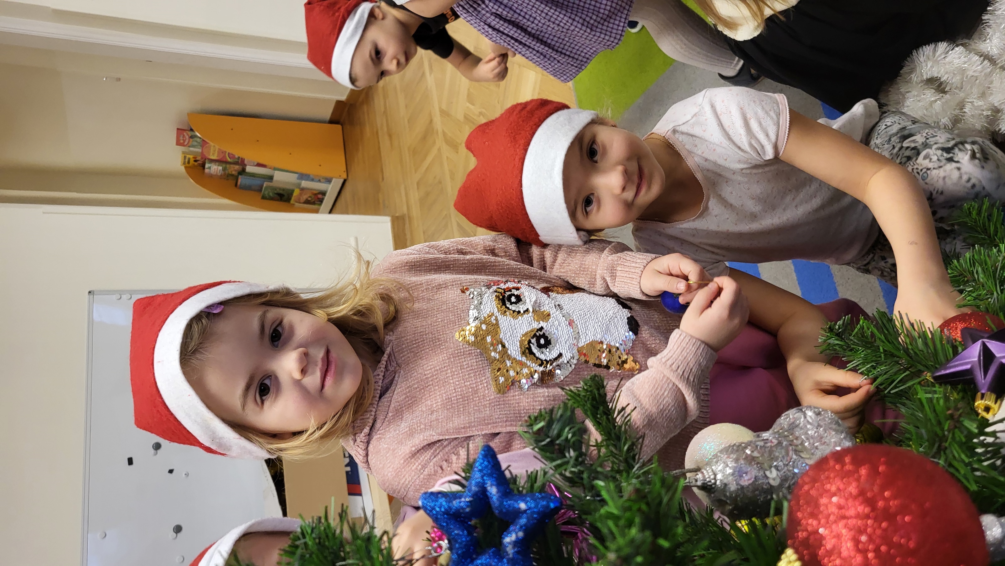 Ubieranie choinki – to moment , na który z niecierpliwością czekały wszystkie przedszkolaki. ,,Motylki” z zapałem przystąpiły do zawieszania na gałązkach kolorowych bombek, ozdób, łańcuchów i kolorowych lampek. Drzewko zostało przystrojone bardzo szybko, wygląda wyjątkowo i przypomina nam, że Święta Bożego Narodzenia zbliżają się tuż, tuż…Wszyscy jednogłośnie stwierdzili, ze choinka jest prześliczna i na pewno Mikołaj położy pod nią prezenty dla wszystkich dzieci.