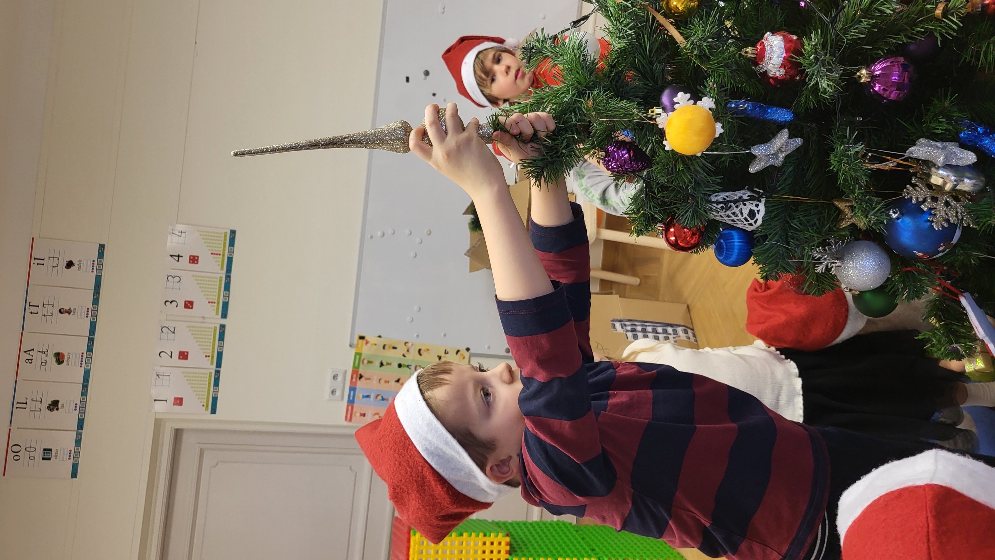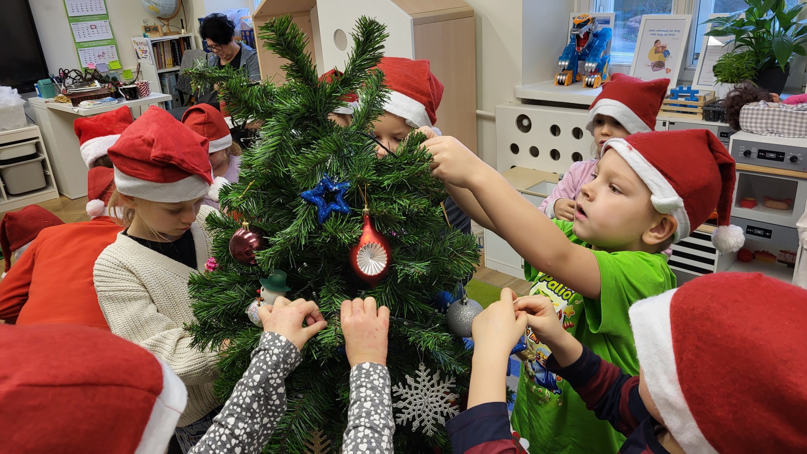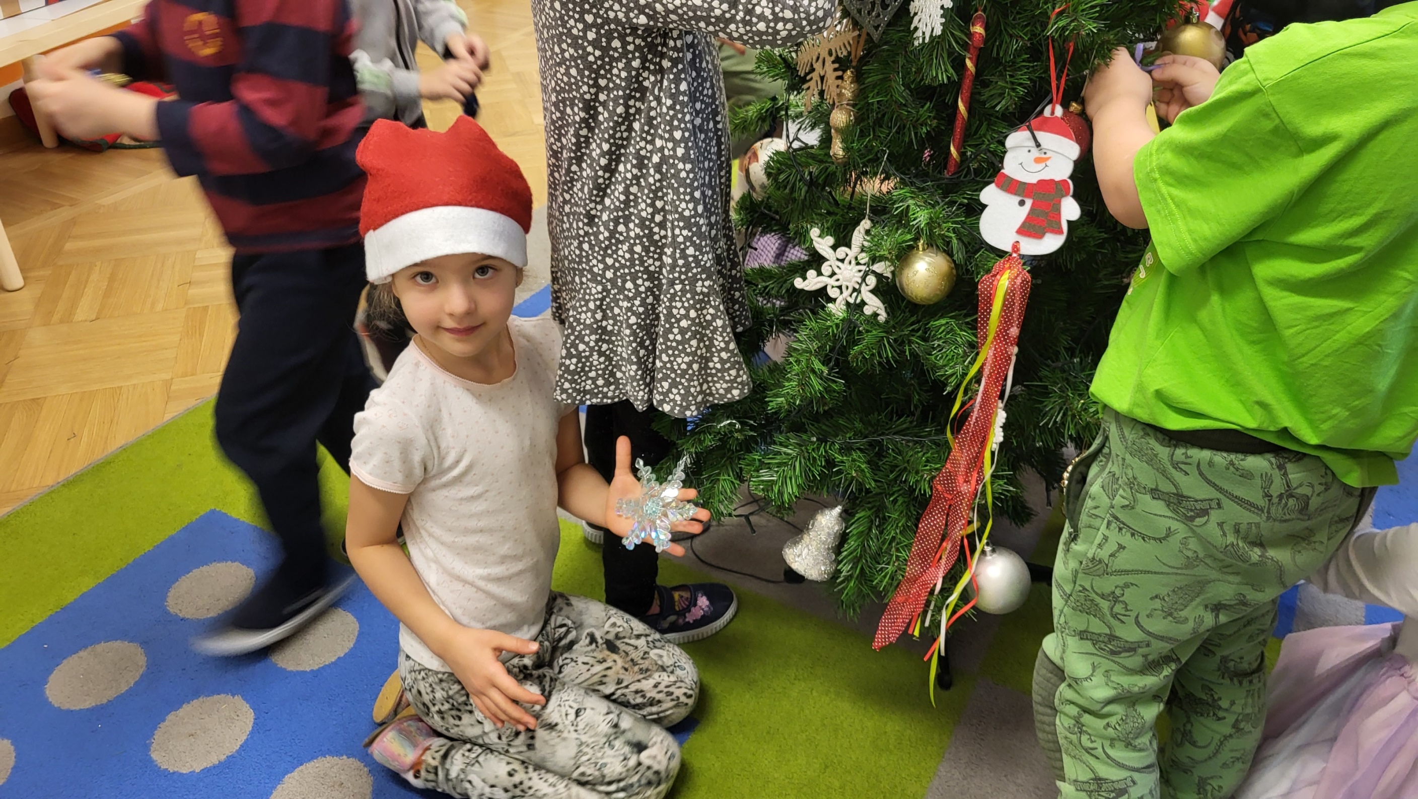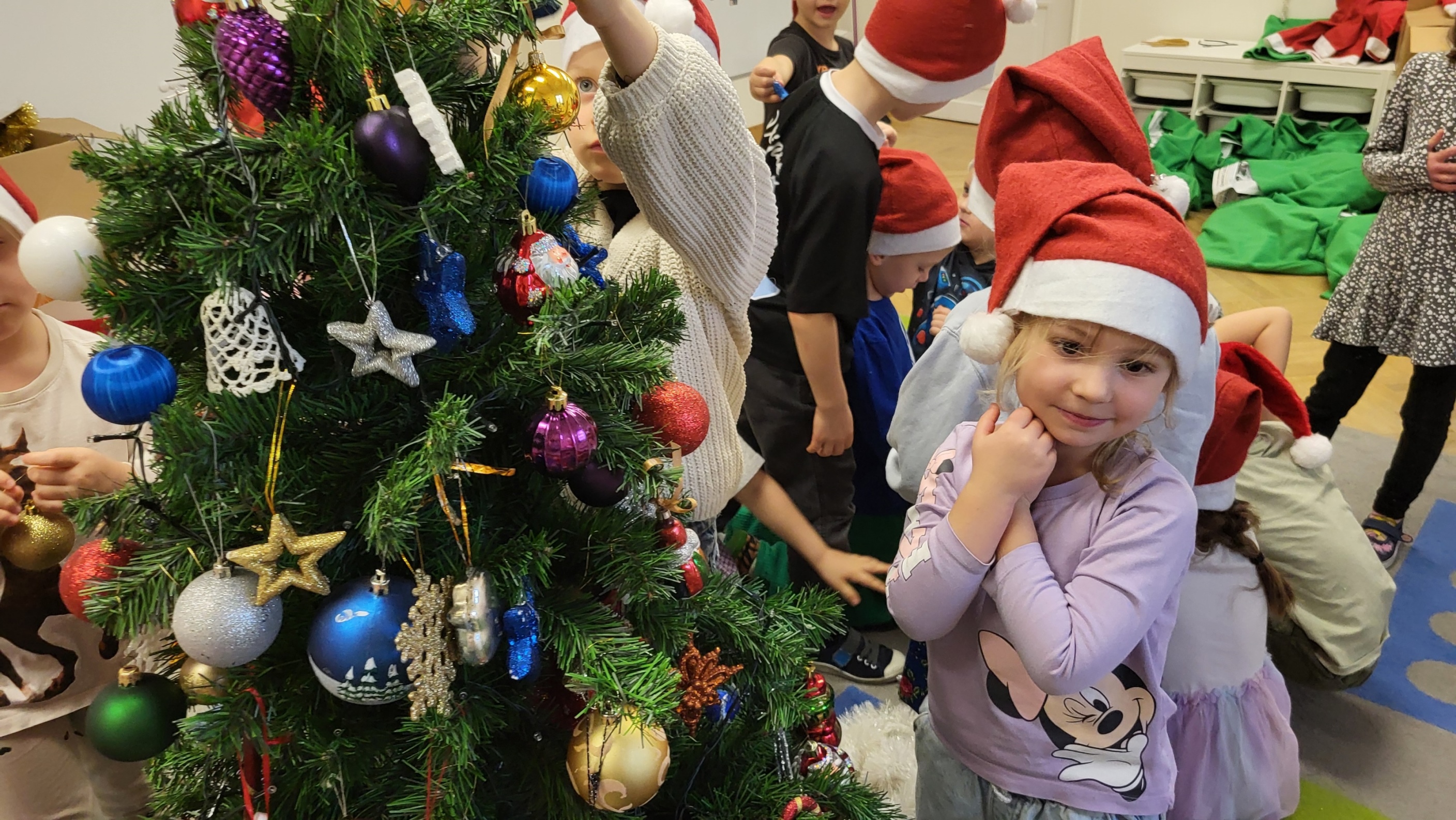 Ubieranie choinki – to moment , na który z niecierpliwością czekały wszystkie przedszkolaki. ,,Motylki” z zapałem przystąpiły do zawieszania na gałązkach kolorowych bombek, ozdób, łańcuchów i kolorowych lampek. Drzewko zostało przystrojone bardzo szybko, wygląda wyjątkowo i przypomina nam, że Święta Bożego Narodzenia zbliżają się tuż, tuż…Wszyscy jednogłośnie stwierdzili, ze choinka jest prześliczna i na pewno Mikołaj położy pod nią prezenty dla wszystkich dzieci.