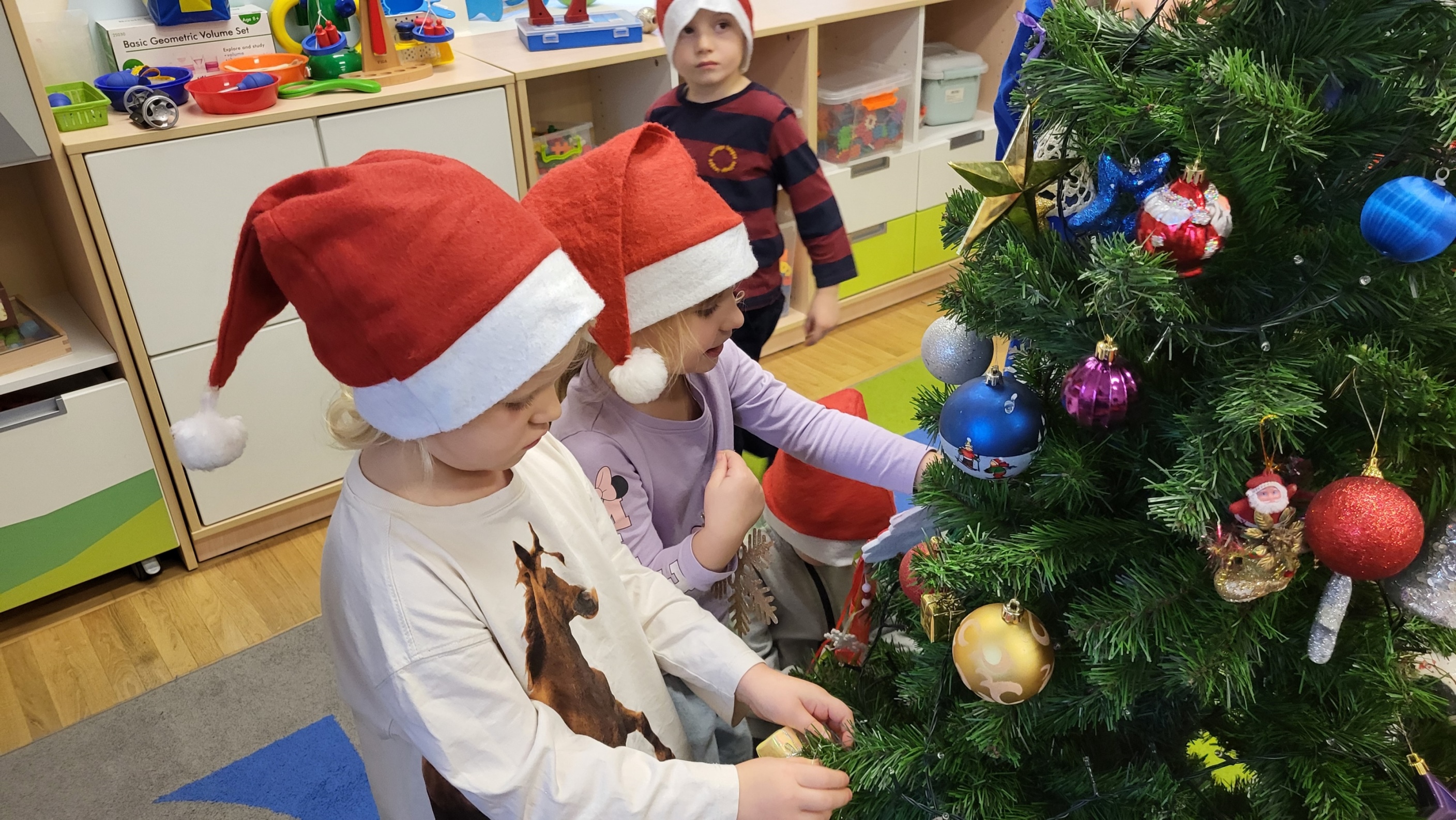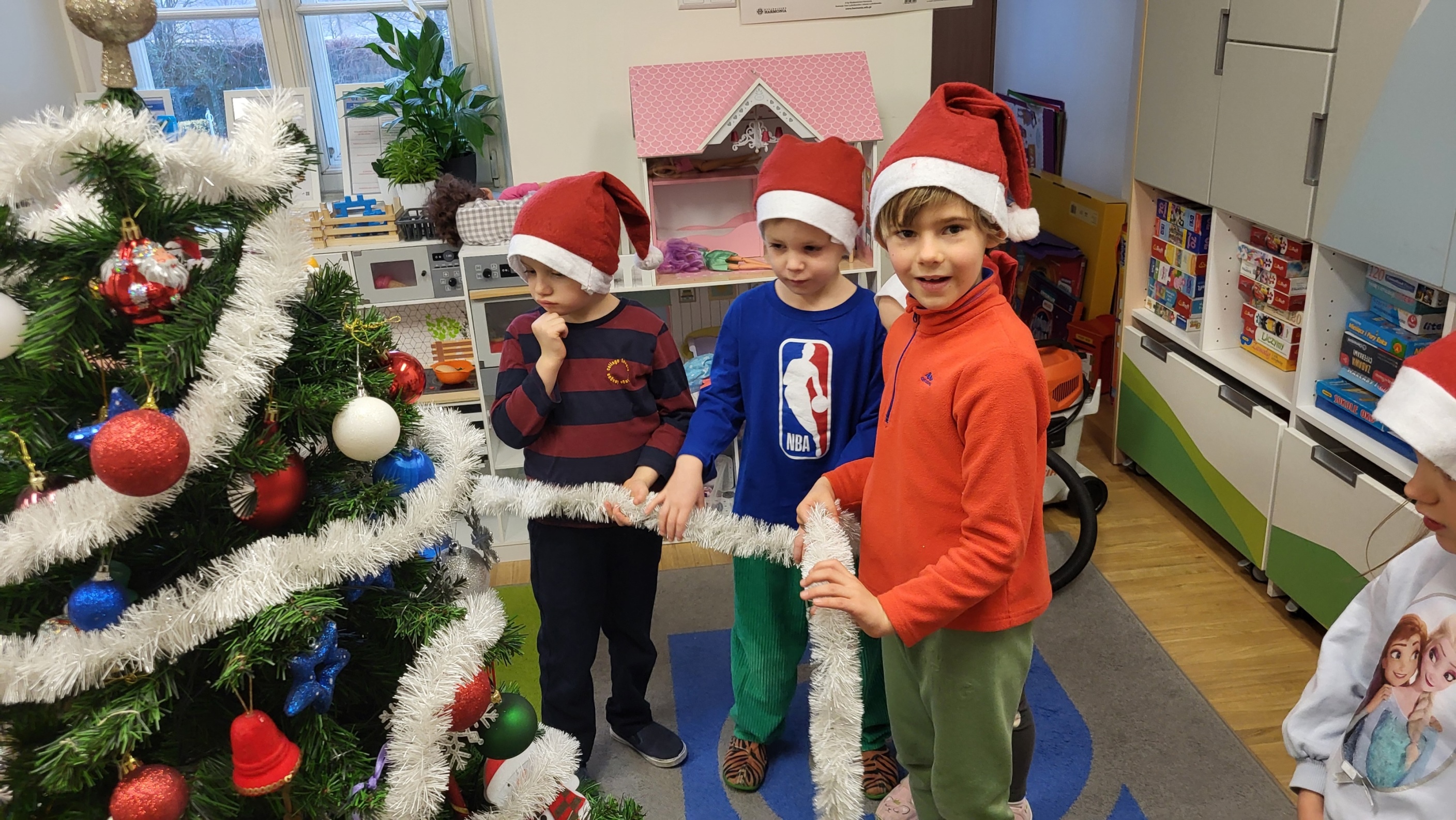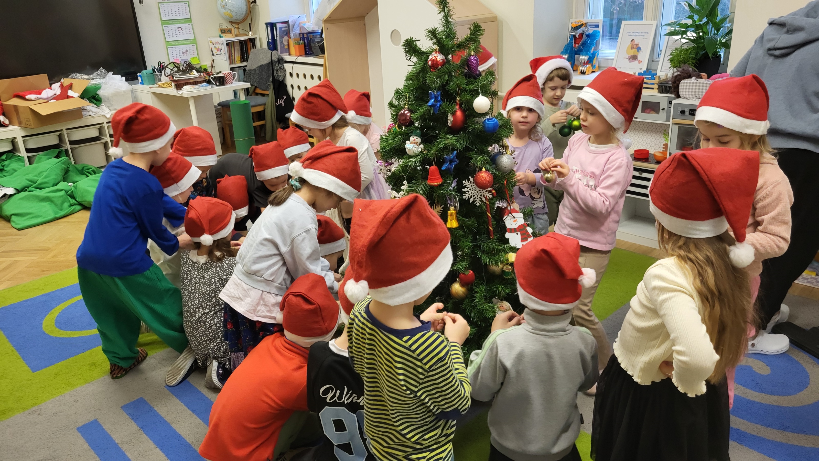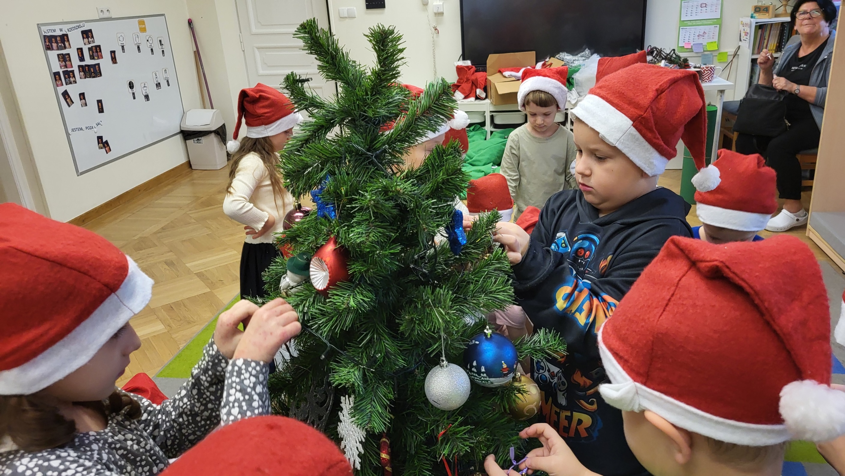 Ubieranie choinki – to moment , na który z niecierpliwością czekały wszystkie przedszkolaki. ,,Motylki” z zapałem przystąpiły do zawieszania na gałązkach kolorowych bombek, ozdób, łańcuchów i kolorowych lampek. Drzewko zostało przystrojone bardzo szybko, wygląda wyjątkowo i przypomina nam, że Święta Bożego Narodzenia zbliżają się tuż, tuż…Wszyscy jednogłośnie stwierdzili, ze choinka jest prześliczna i na pewno Mikołaj położy pod nią prezenty dla wszystkich dzieci.