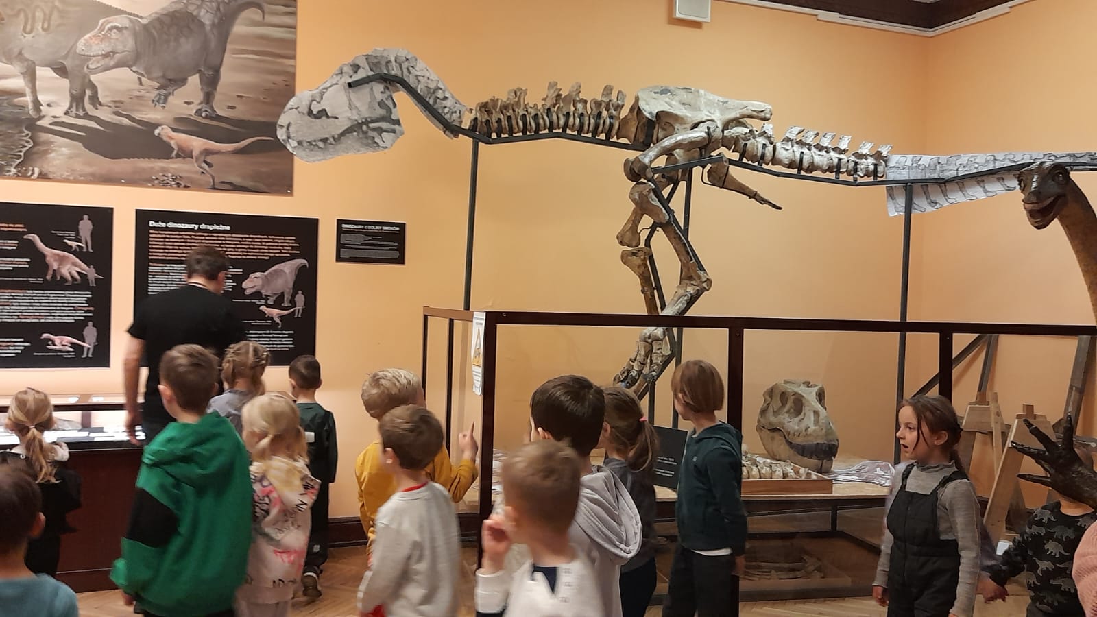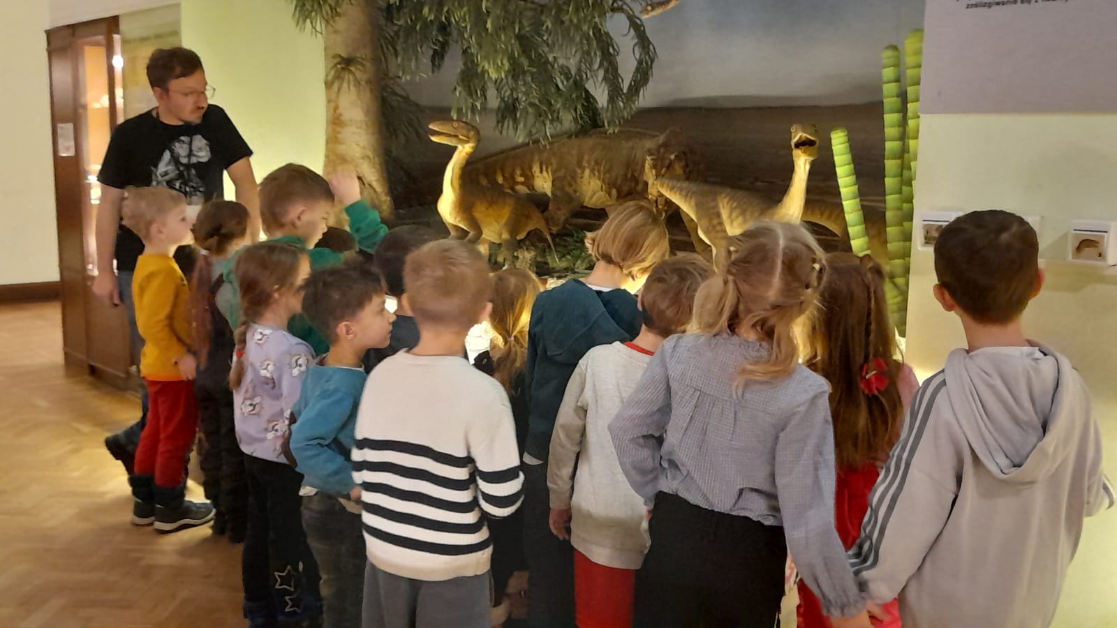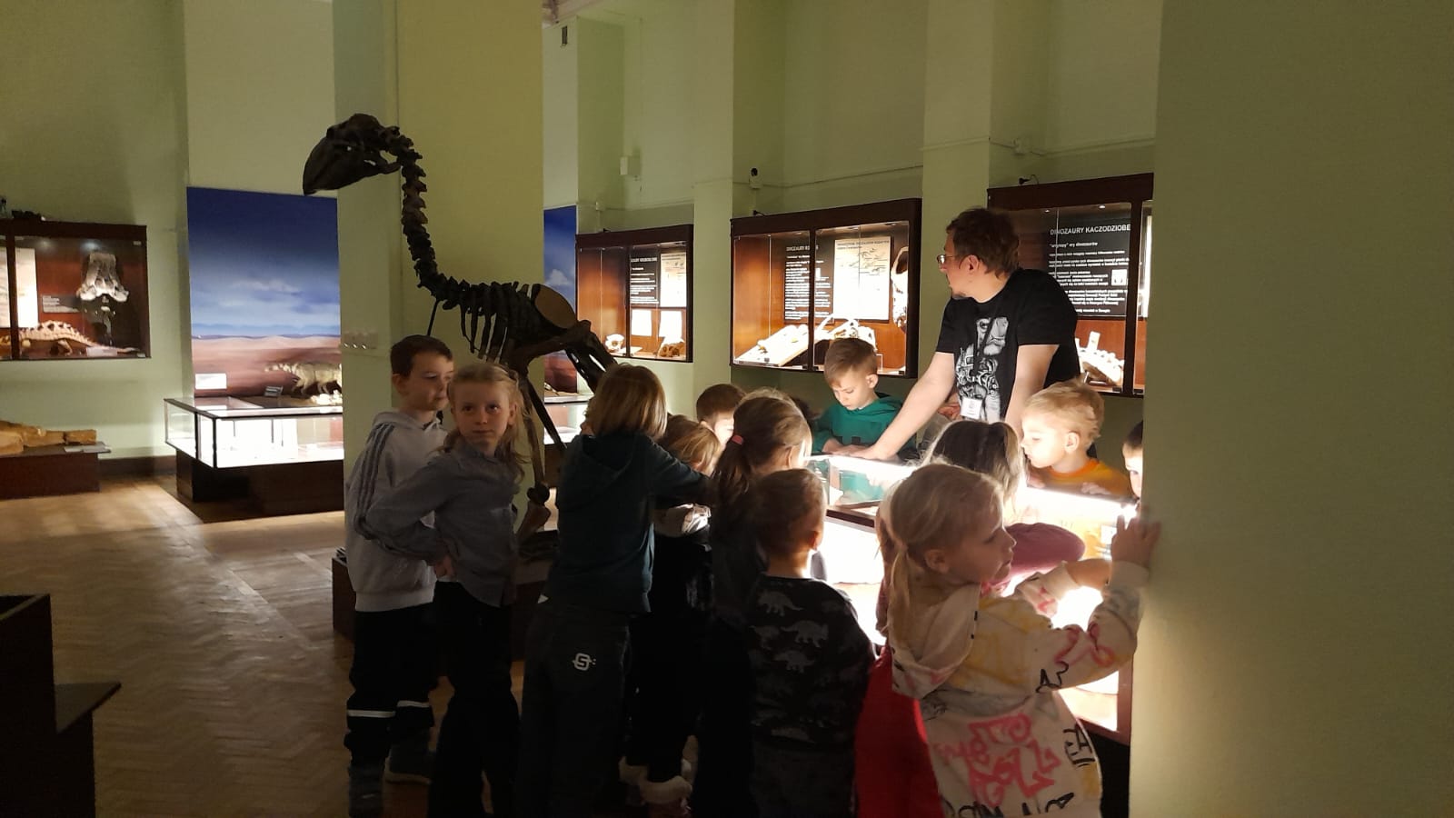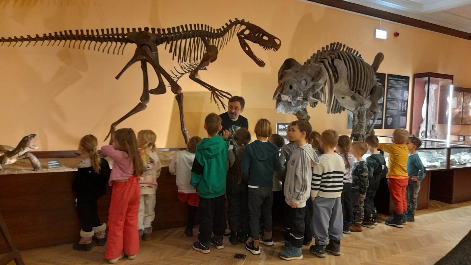 Dzieci z grupy „Motylki” były na wycieczce w Muzeum Ewolucji . Przedszkolaki z ogromnym entuzjazmem oglądały szkielety dinozaurów, słuchały ciekawych informacji dotyczących ewolucji człowieka. Miały też okazję oglądać eksponaty zwierząt zagrożonych wyginięciem. W mieszczącym się w Pałacu Kultury i Nauki kameralnym muzeum widziały również skamieniałe jaja oraz szczątki prymitywnych ssaków.