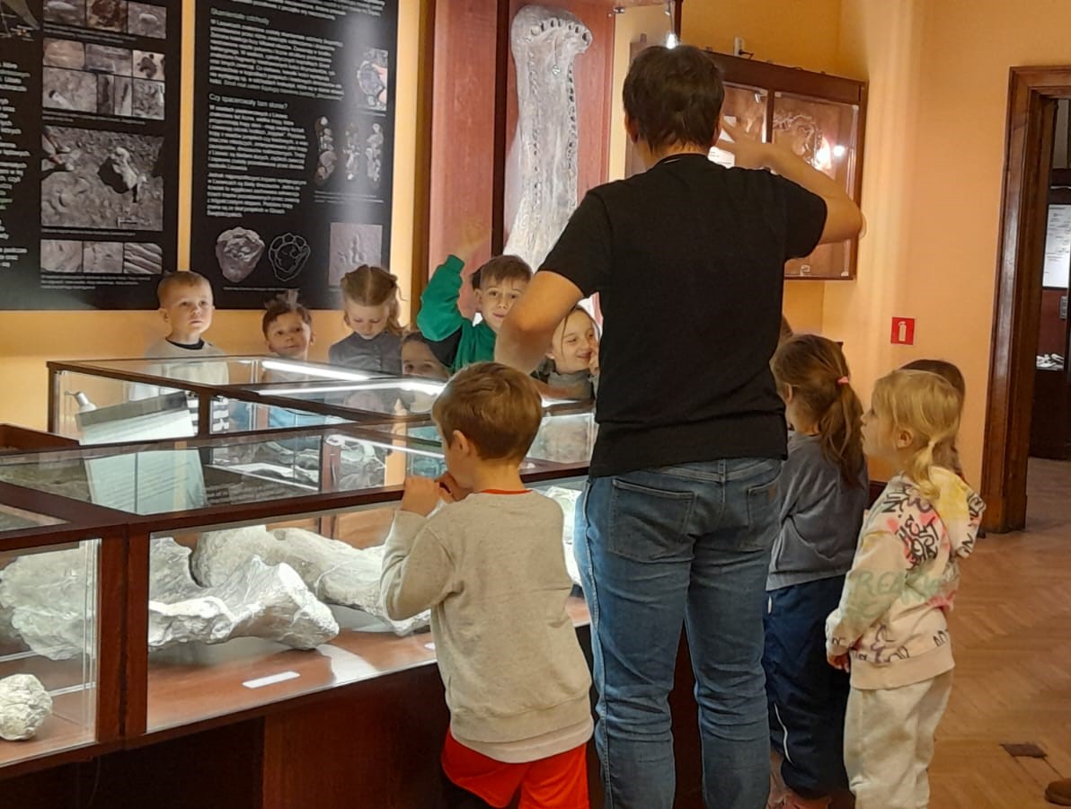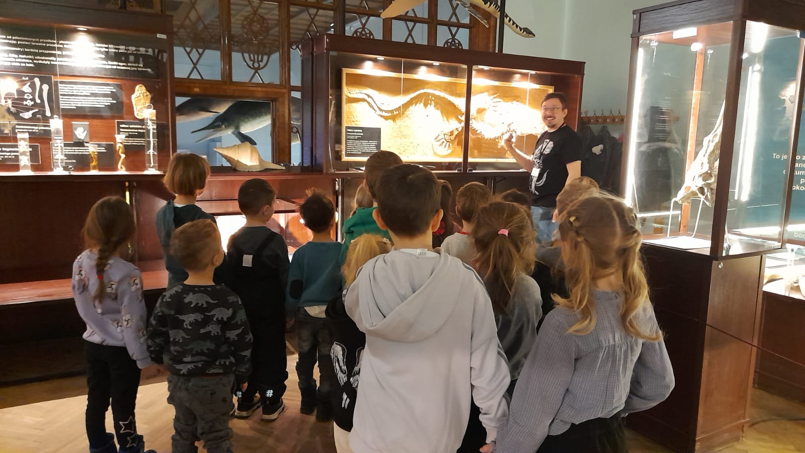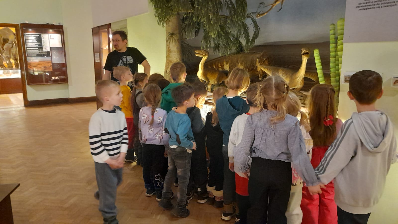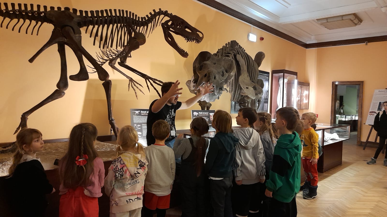 Dzieci z grupy „Motylki” były na wycieczce w Muzeum Ewolucji . Przedszkolaki z ogromnym entuzjazmem oglądały szkielety dinozaurów, słuchały ciekawych informacji dotyczących ewolucji człowieka. Miały też okazję oglądać eksponaty zwierząt zagrożonych wyginięciem. W mieszczącym się w Pałacu Kultury i Nauki kameralnym muzeum widziały również skamieniałe jaja oraz szczątki prymitywnych ssaków.