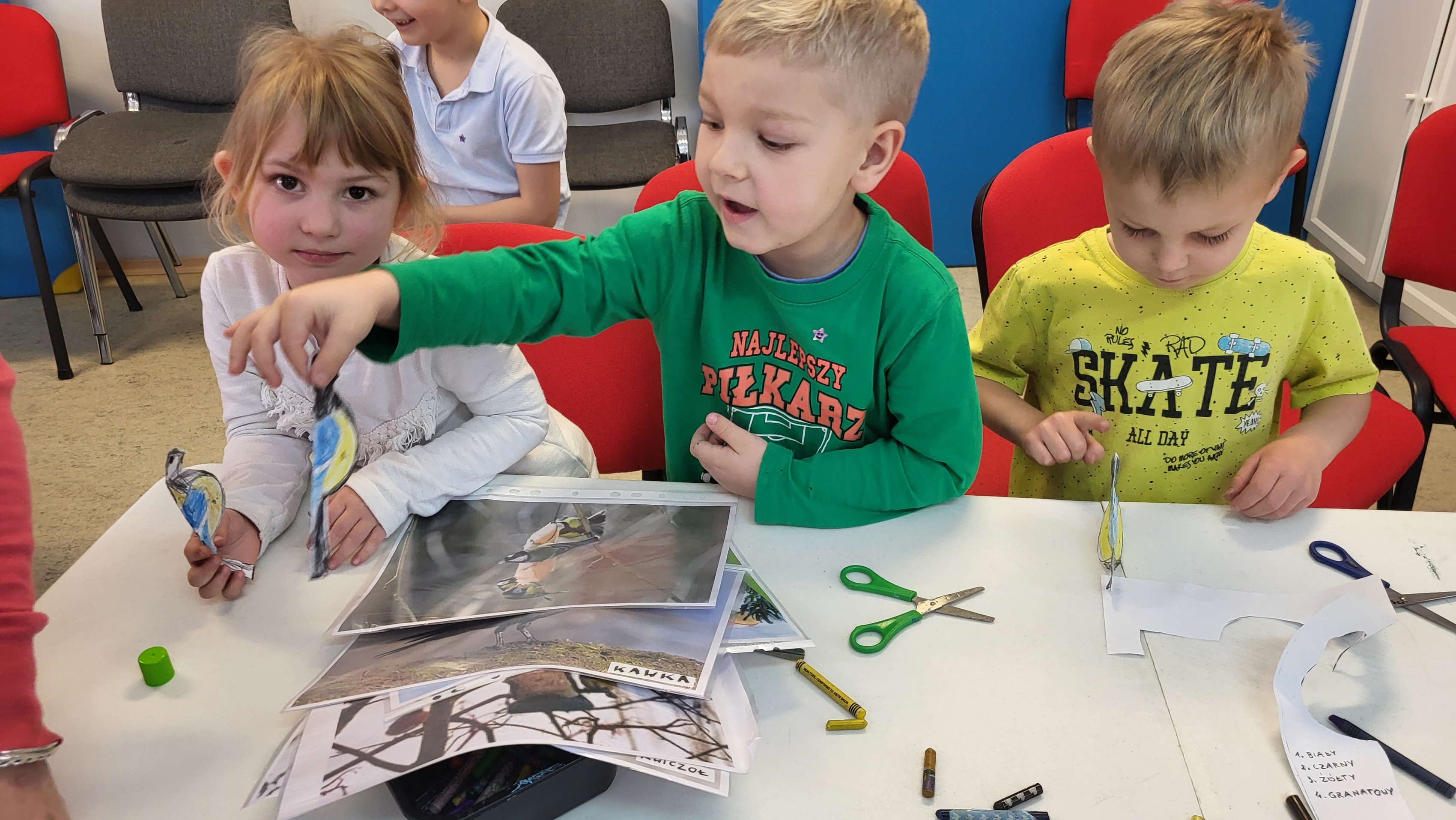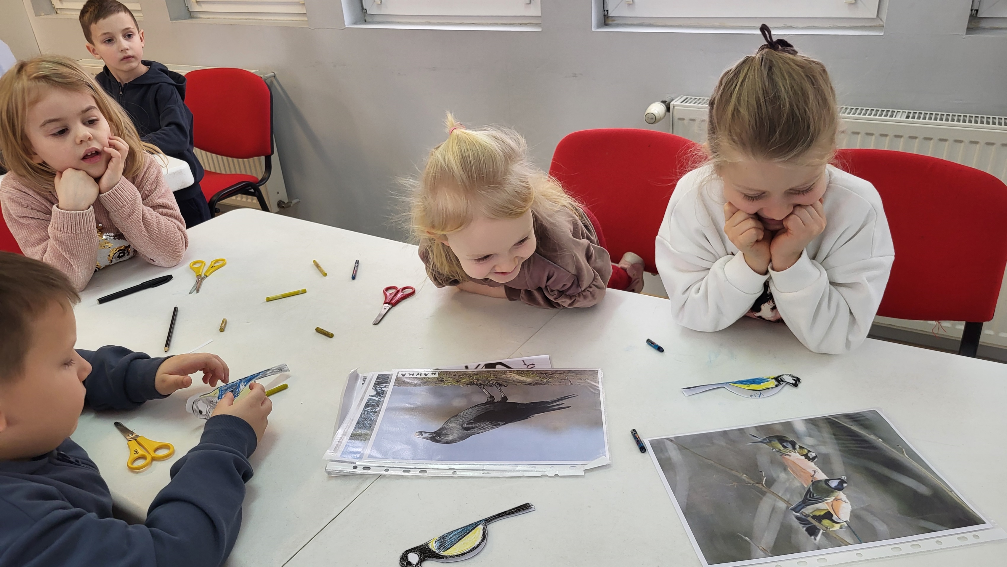 Dokarmianie ptaków to doskonała okazja do kształtowania u dzieci poczucia odpowiedzialności oraz wrażliwości na losy zwierząt. Na zajęciach wykonywały różne prace związane z tematem. Wzięły także udział w warsztatach zorganizowanych przez MDK przy ul. Fabrycznej. Na zakończenie ulepiły ptaszki z własnoręcznie wykonanej masy solnej