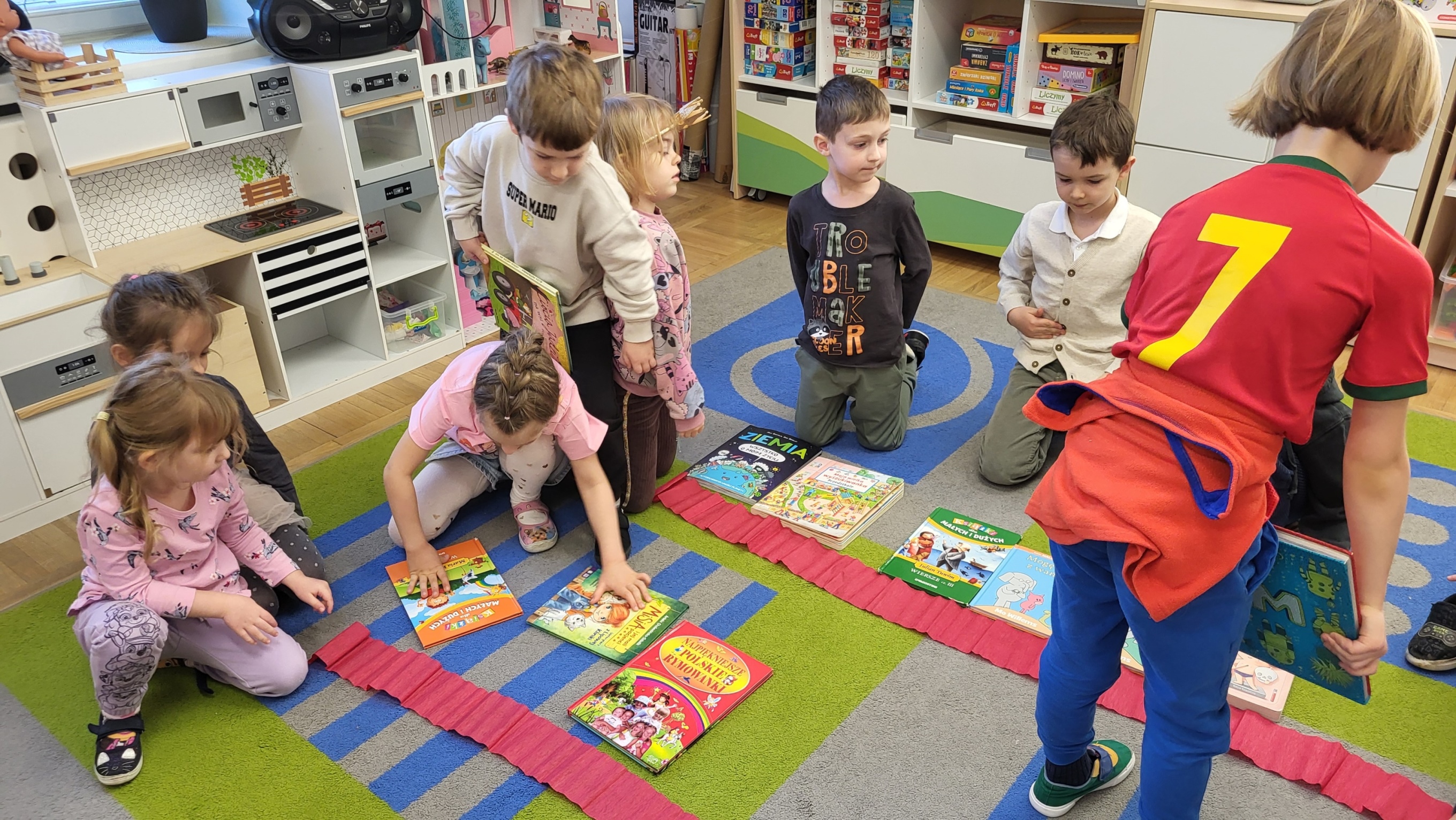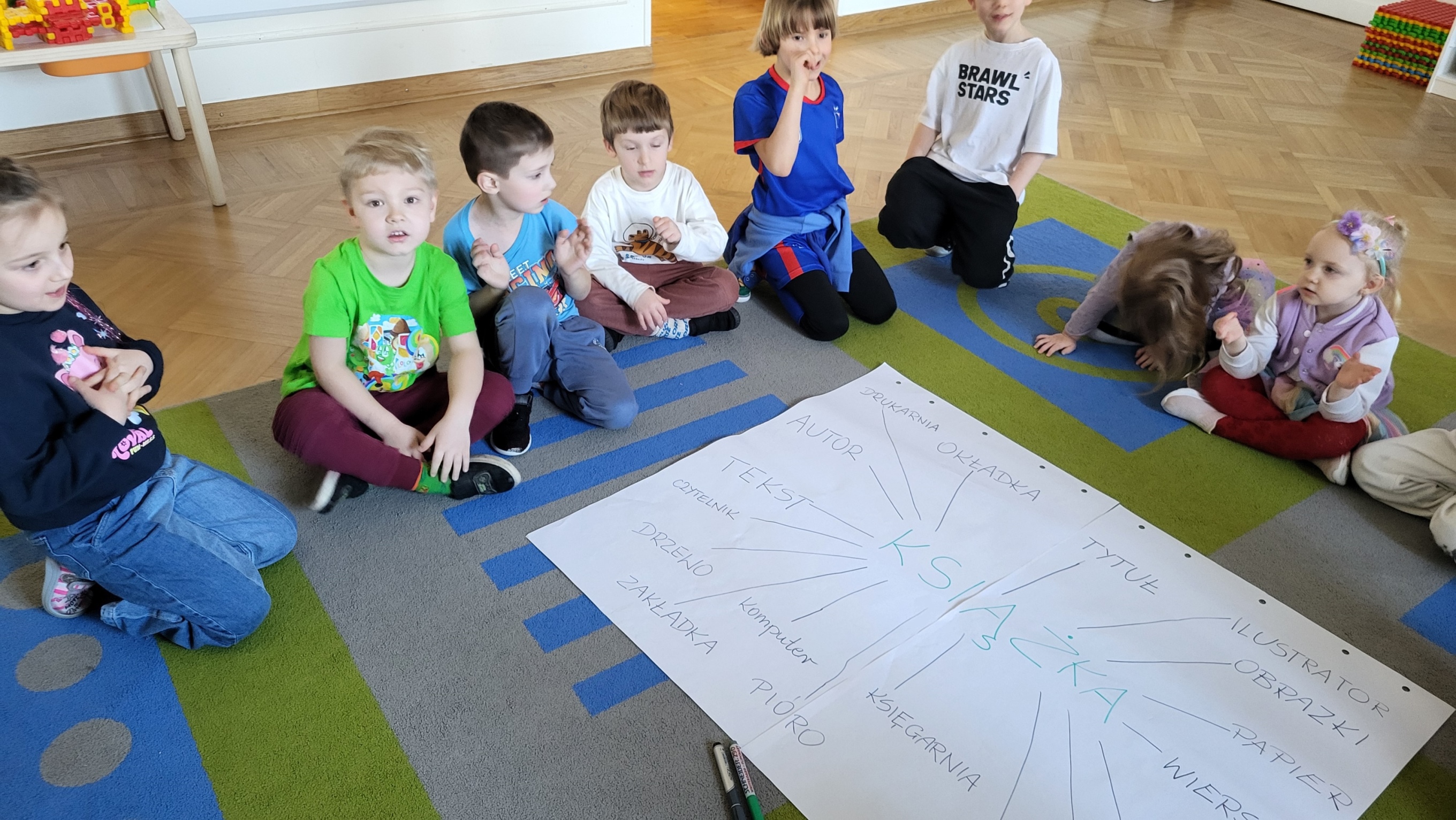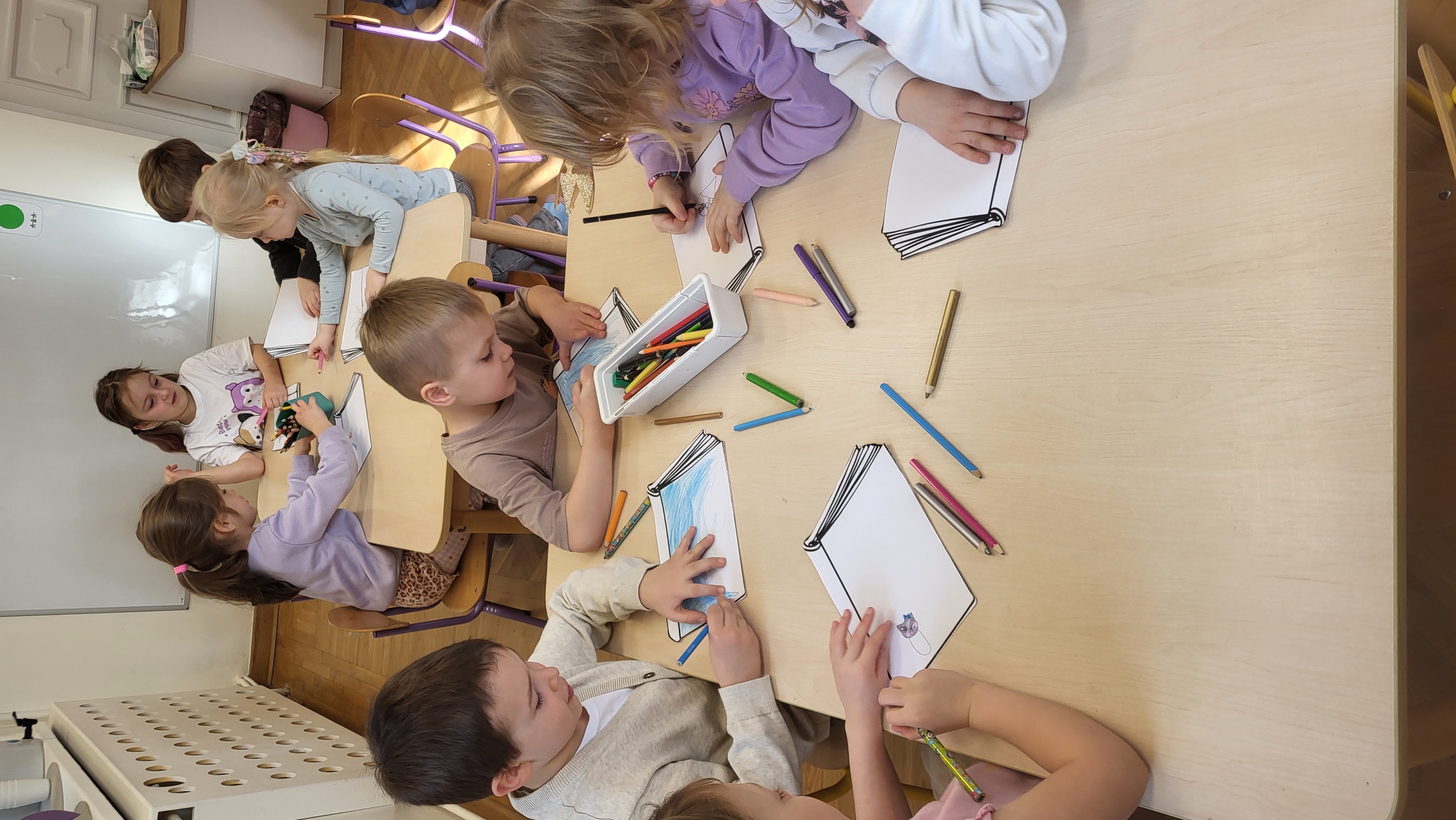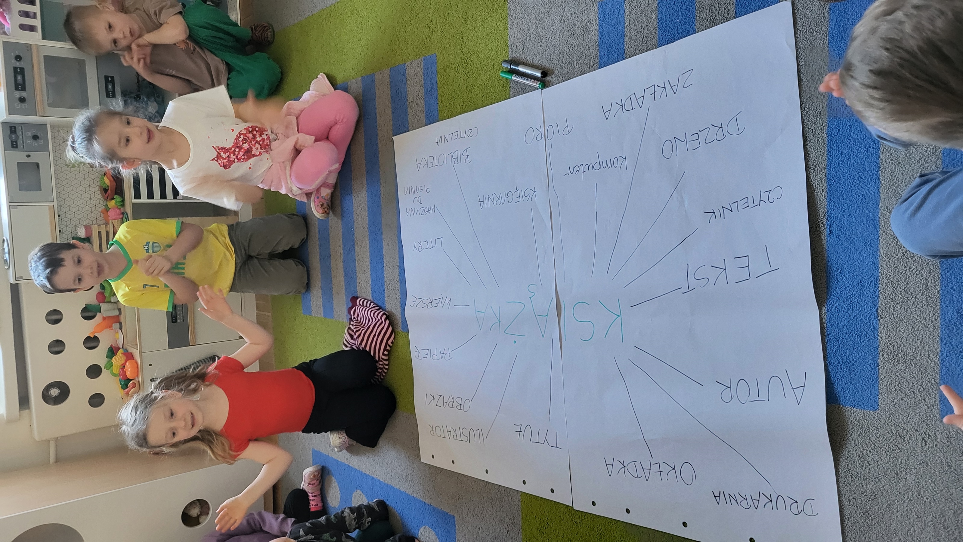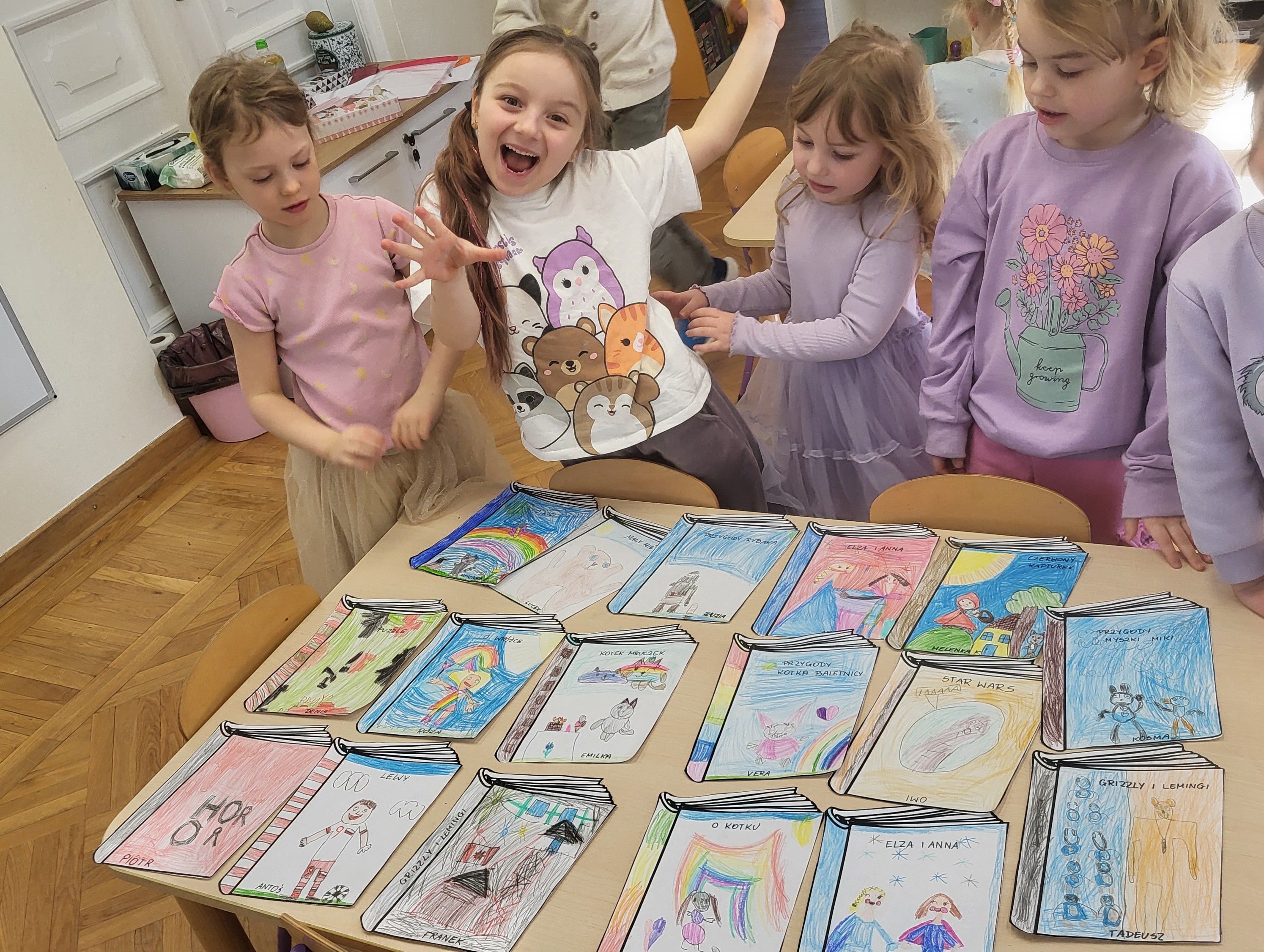Głównym założeniem projektu „ Książka” było umożliwienie dzieciom poznawanie utworów literatury dziecięcej i rozwijanie ich zainteresowań czytelniczych poprzez jak najczęstszy kontakt z książką oraz dobrowolny i spontaniczny udział w zabawach z tekstem. Poprzez różnorodne działania dzieci dowiedziały się jak powstają książki, kto je pisze, a kto wykonuje ilustracje. Gdzie można kupić, a gdzie wypożyczać książki. Słuchały treści różnych książeczek czytanych przez nauczycielki . Codziennie oglądały książeczki o różnej tematyce zgromadzone w Kąciku Książki, wypowiadały się na temat ich treści. Opowiadały o swoich ulubionych książeczkach. Zaprojektowały okładkę do wybranej książki oraz wykonały zakładki, które z pewnością przydadzą się podczas czytania w domu.
