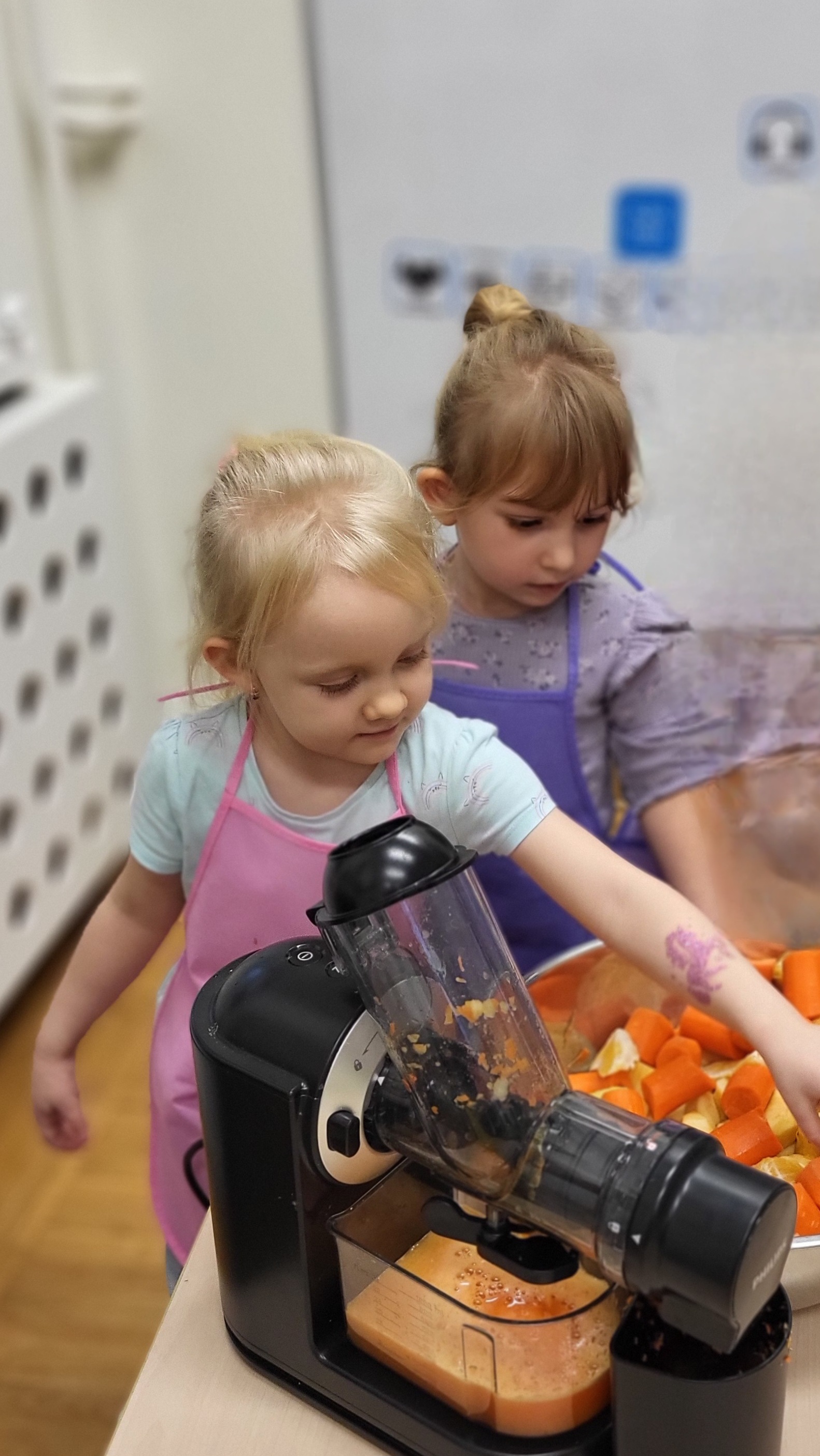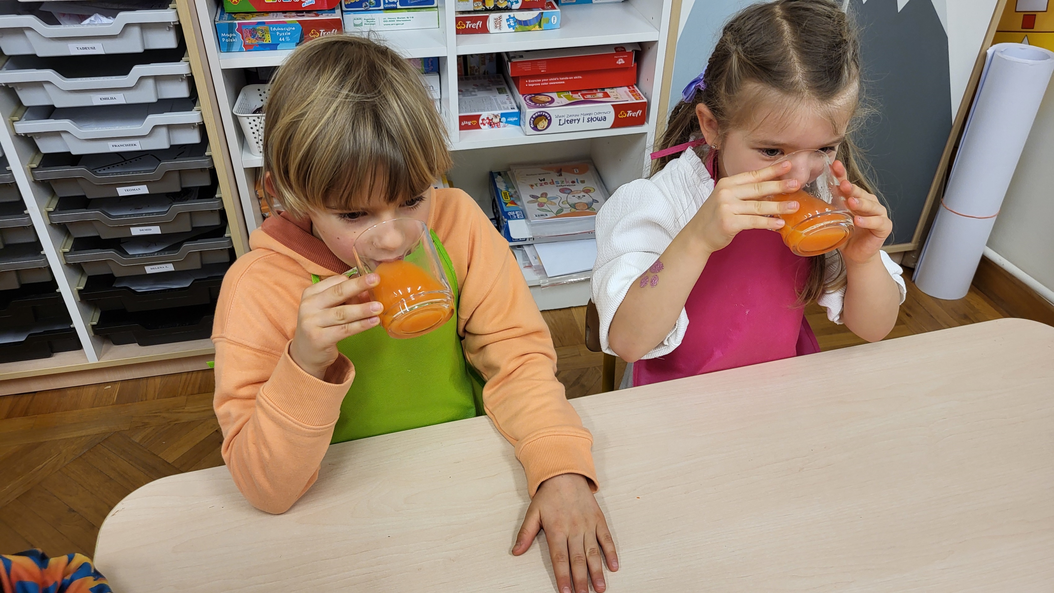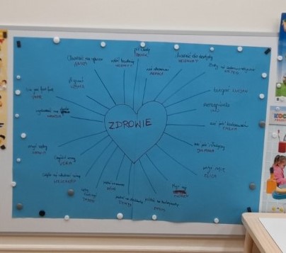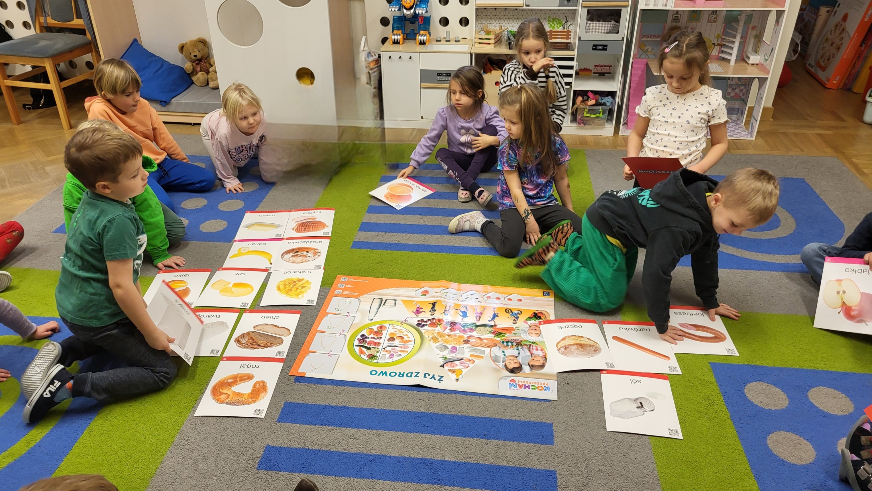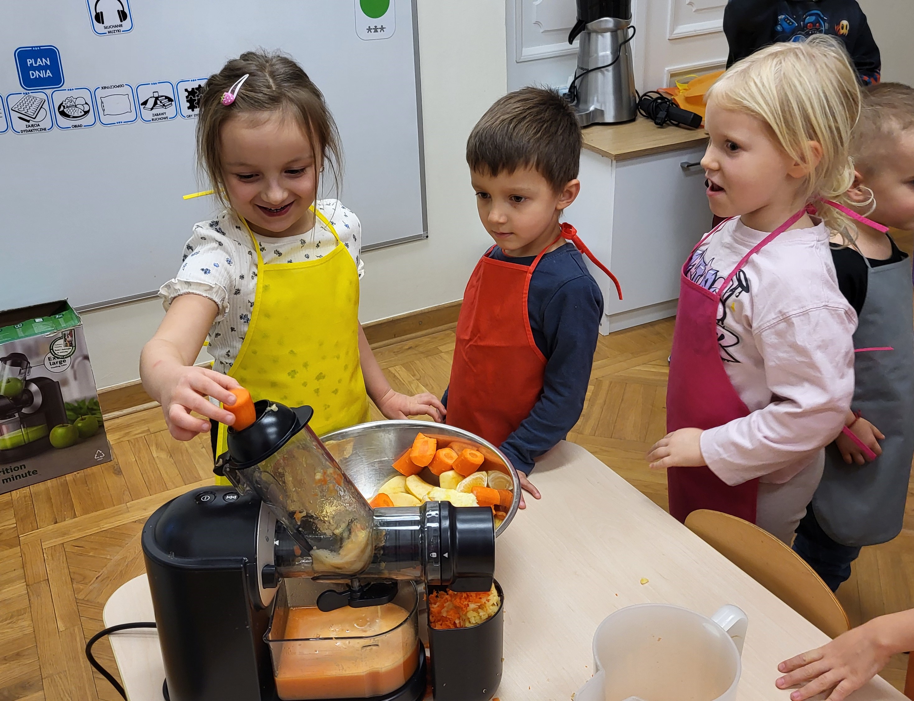 W naszym przedszkolu ten tydzień poświęcony był zdrowiu. Na wstępnie dzieci podały przykłady co należy robić aby być zdrowym, a następnie z zaangażowaniem przystąpiły do zadań promujących zdrowie Poznały zasady zdrowego odżywiania. W oparciu o piramidę zdrowego żywienia ustalały czy dany produkt jest zdrowy czy nie bardzo i do której grupy go zaliczamy. Dodatkową atrakcją było przygotowanie soku z owoców i warzyw. Dzieci z zaangażowaniem wykonały przepyszny napój, który wszystkim bardzo smakował. Dowiedziały się jak ważny dla zdrowia jest ruch i pobyt na świeżym powietrzu.