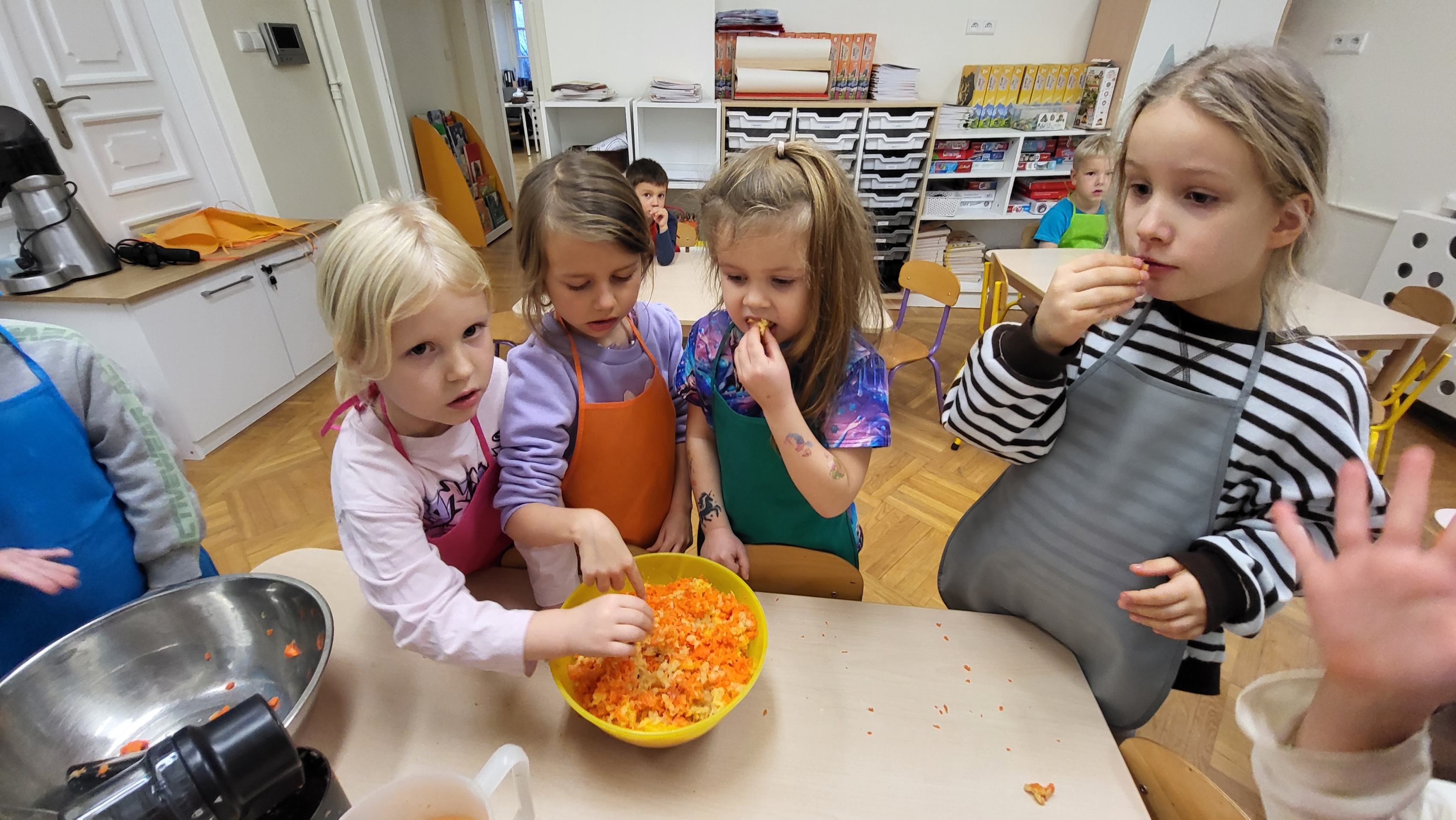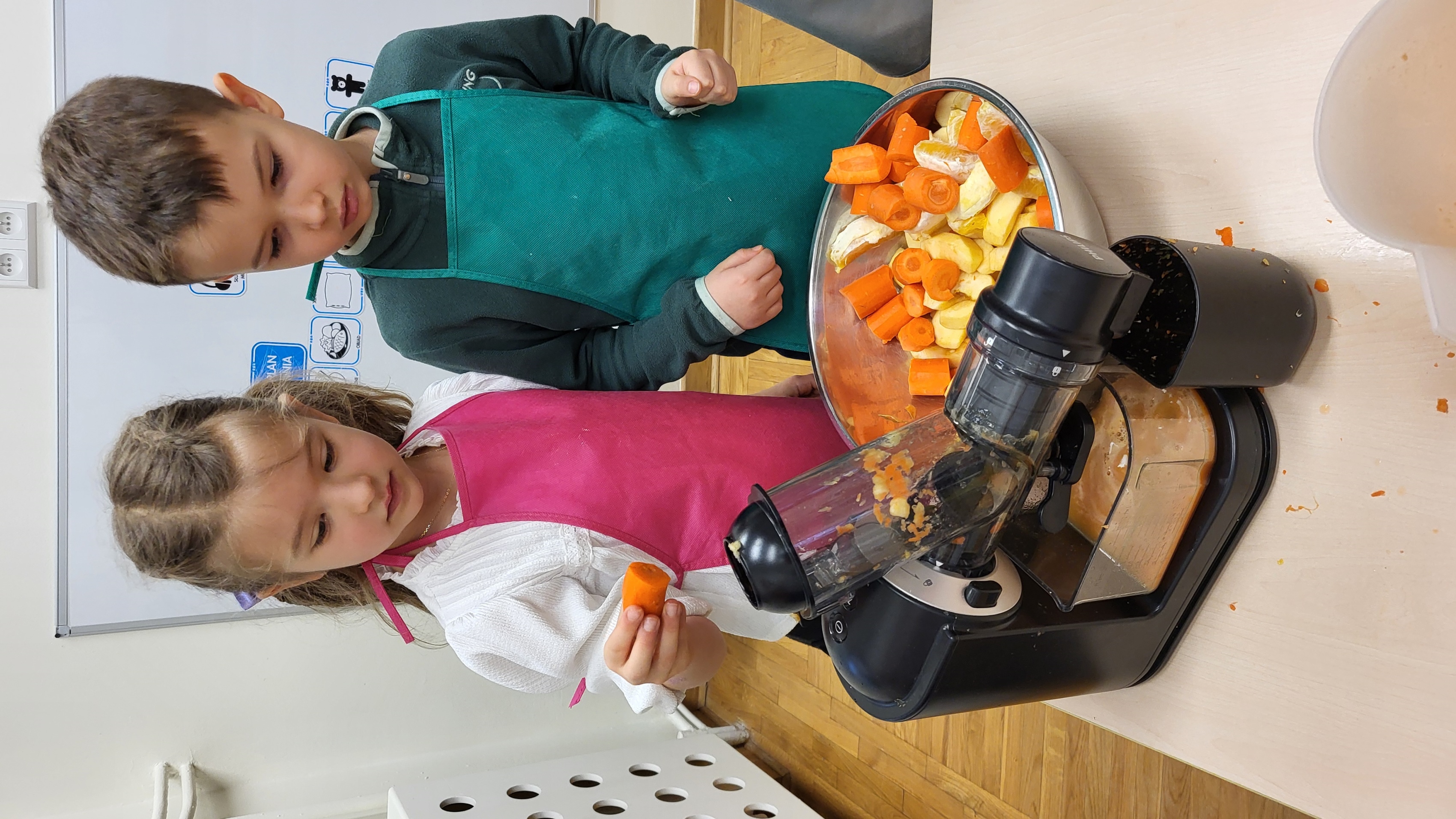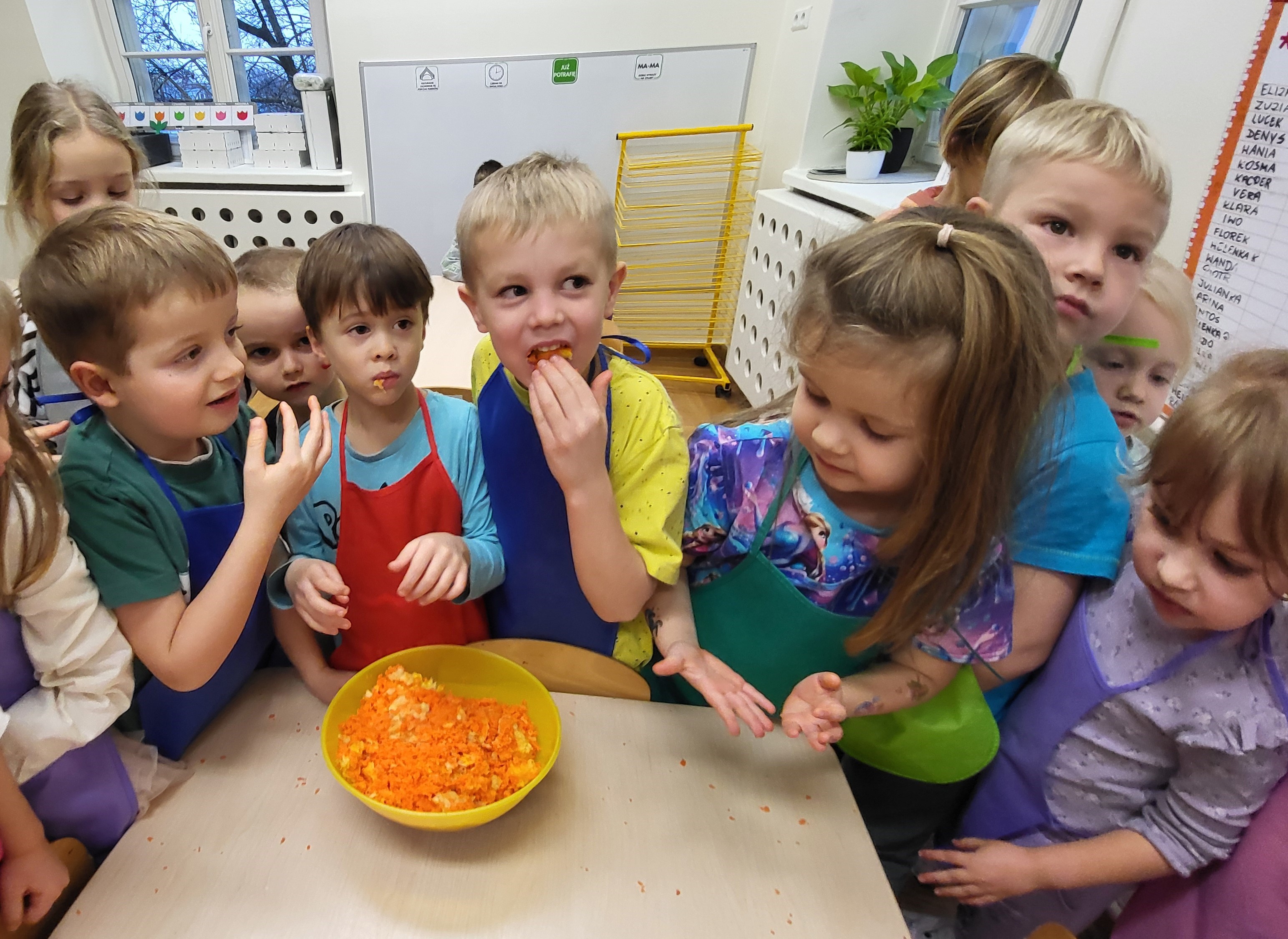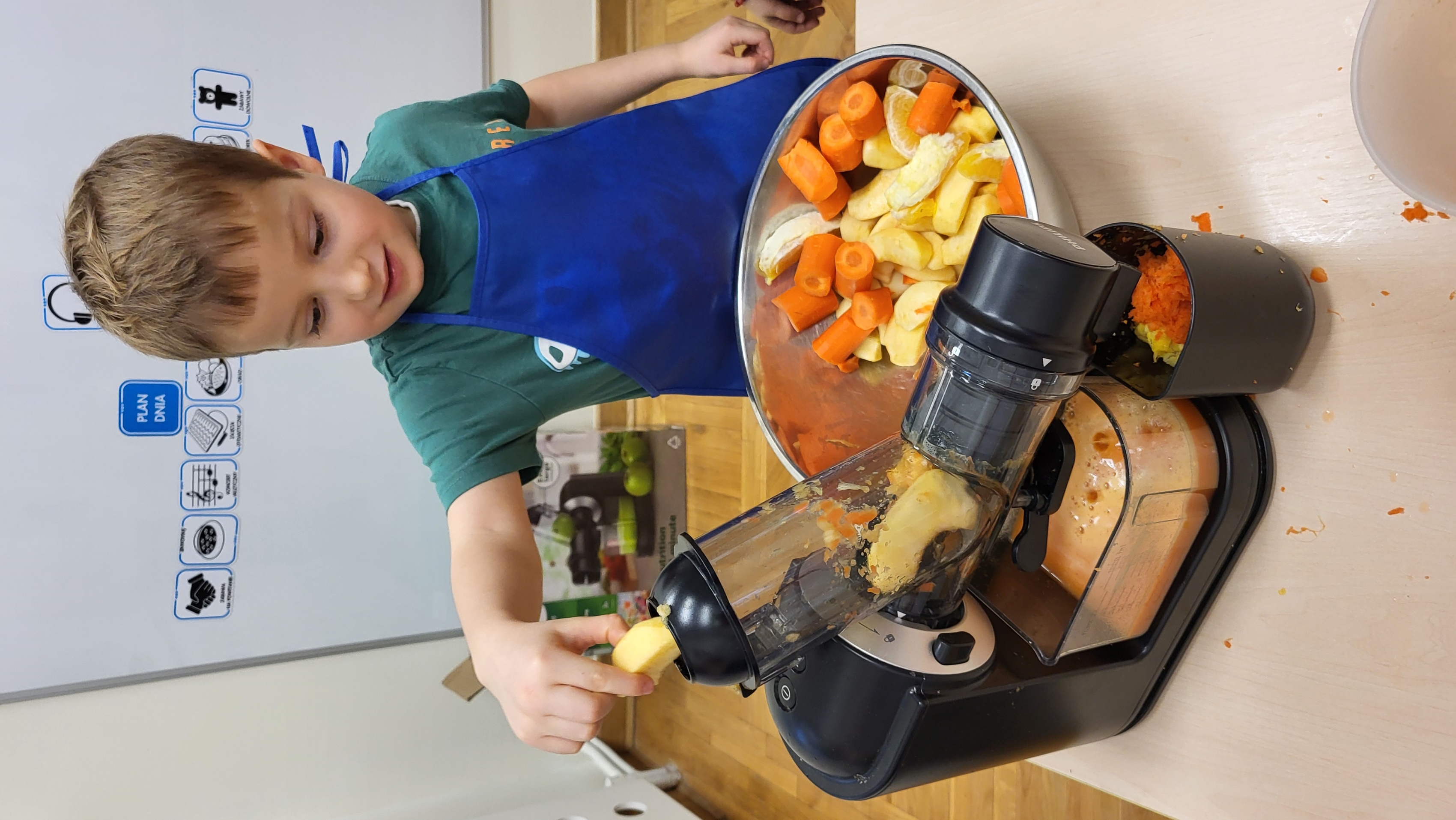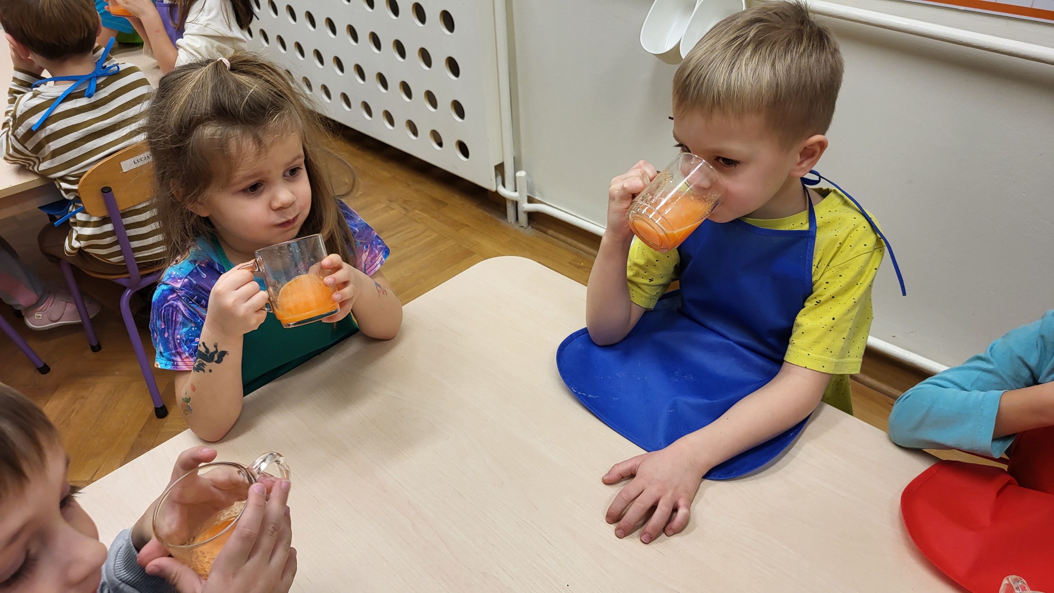 W naszym przedszkolu ten tydzień poświęcony był zdrowiu. Na wstępnie dzieci podały przykłady co należy robić aby być zdrowym, a następnie z zaangażowaniem przystąpiły do zadań promujących zdrowie Poznały zasady zdrowego odżywiania. W oparciu o piramidę zdrowego żywienia ustalały czy dany produkt jest zdrowy czy nie bardzo i do której grupy go zaliczamy. Dodatkową atrakcją było przygotowanie soku z owoców i warzyw. Dzieci z zaangażowaniem wykonały przepyszny napój, który wszystkim bardzo smakował. Dowiedziały się jak ważny dla zdrowia jest ruch i pobyt na świeżym powietrzu.