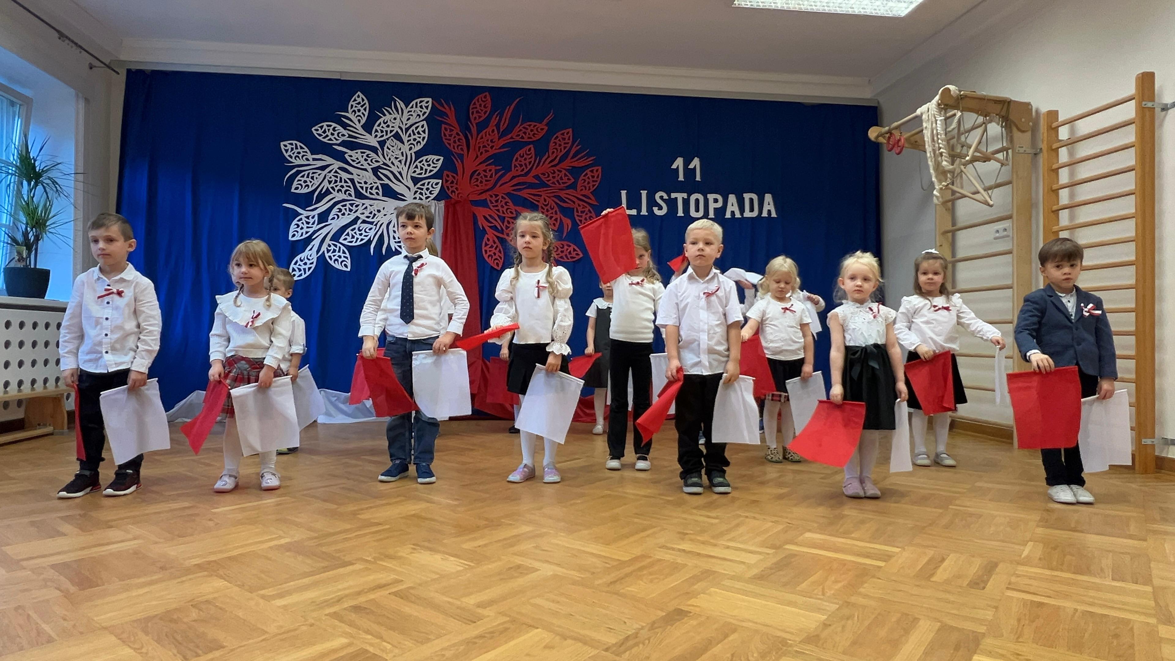 W piątek 7 listopada w naszym przedszkolu świętowaliśmy Narodowe Święto Niepodległości. To wyjątkowy czas dla każdej Polki i Polaka. Z tej okazji dzieci z wszystkich grup oraz pracownicy przedszkola zebrali się, aby uroczyście świętować ten wyjątkowy dla Polaków czas. Wszyscy z powagą i w dużym skupieniu zaśpiewali nasz hymn narodowy a następnie oglądali program artystyczny przygotowany przez dzieci. Uroczystość z okazji Narodowego Święta Niepodległości miała na celu rozwijanie wśród wychowanków naszego przedszkola poczucia przynależności narodowej, pielęgnowanie polskiej kultury i tradycji. Jednocześnie była pouczającą lekcją historii i patriotyzmu.