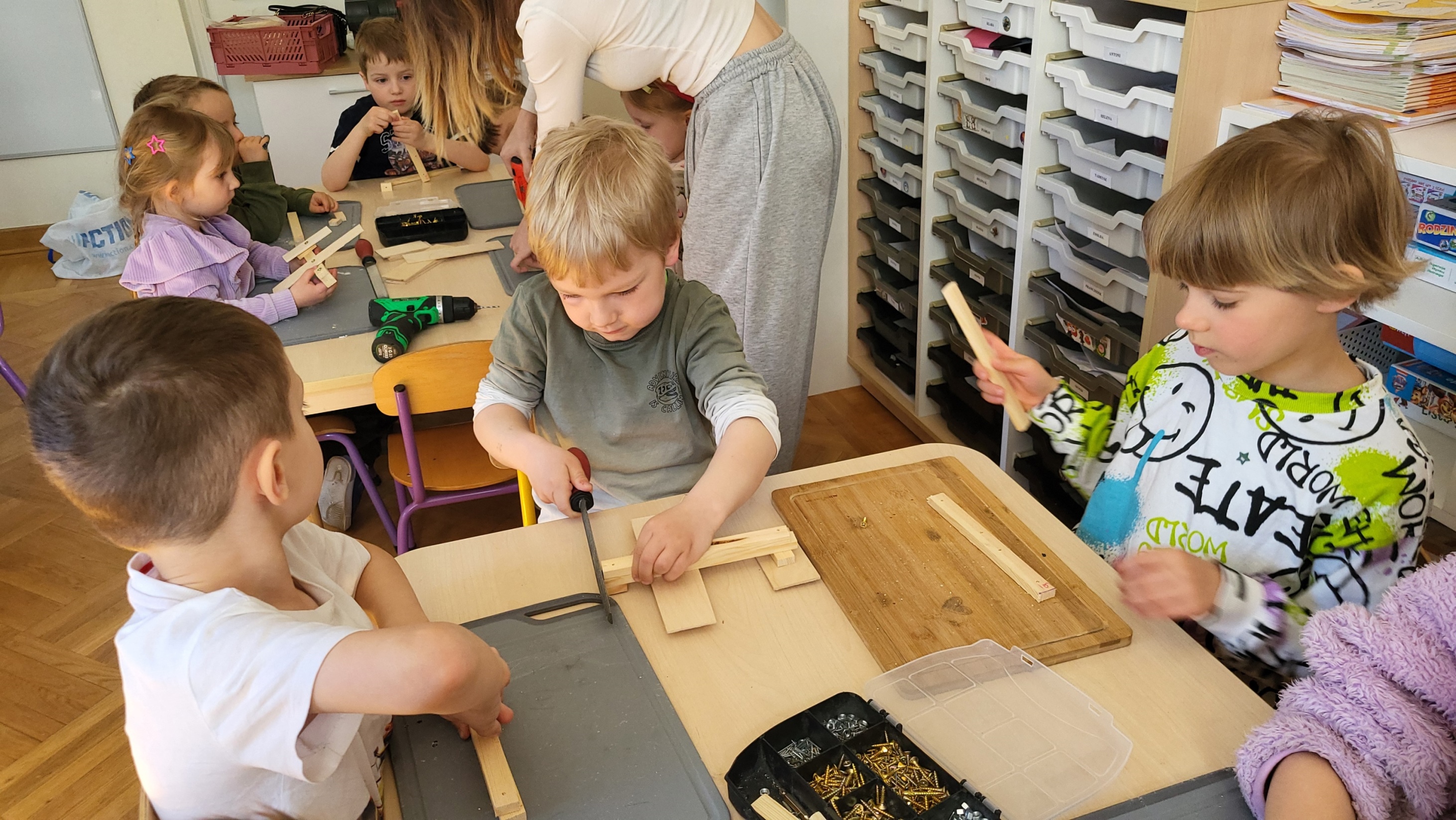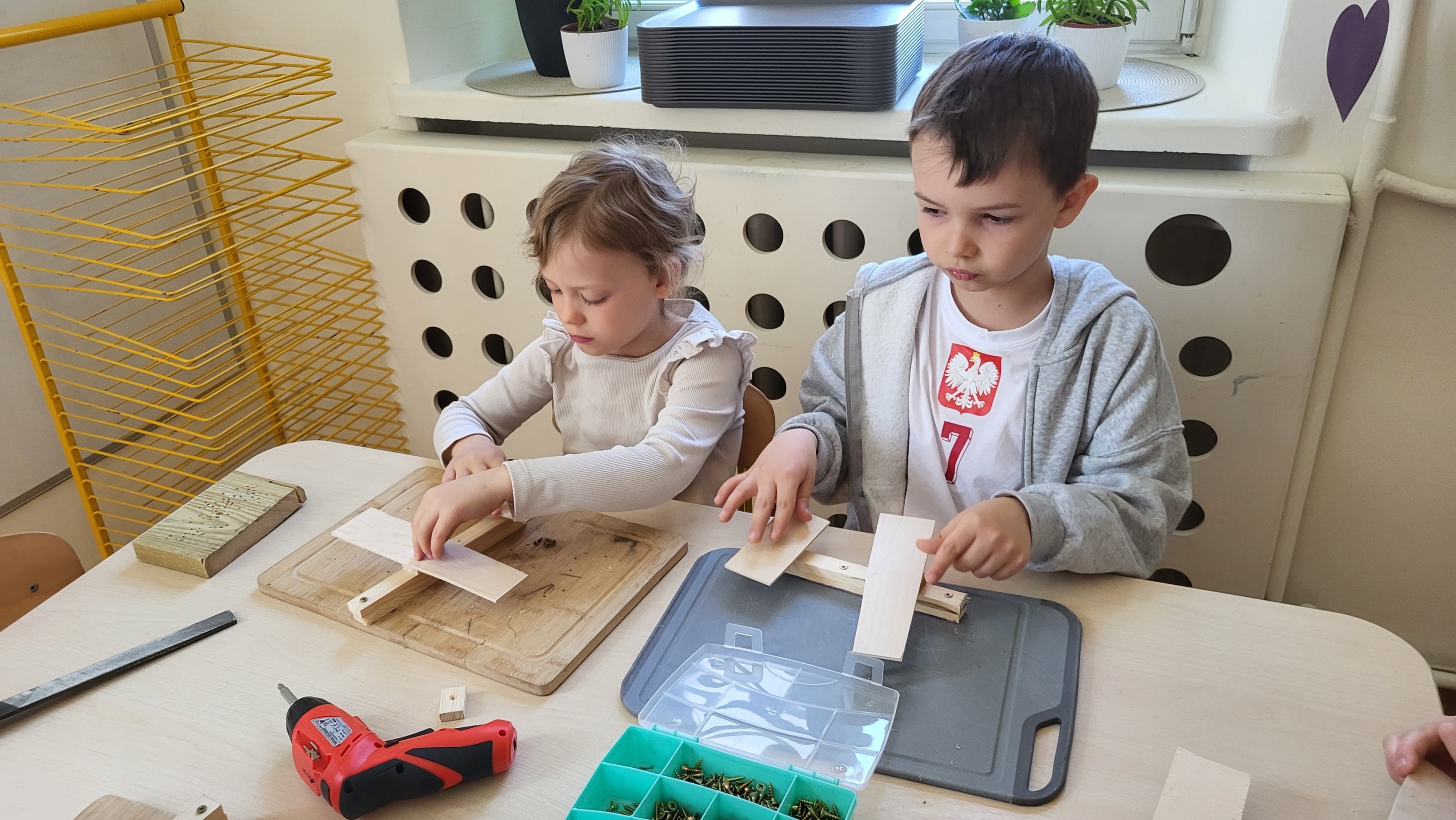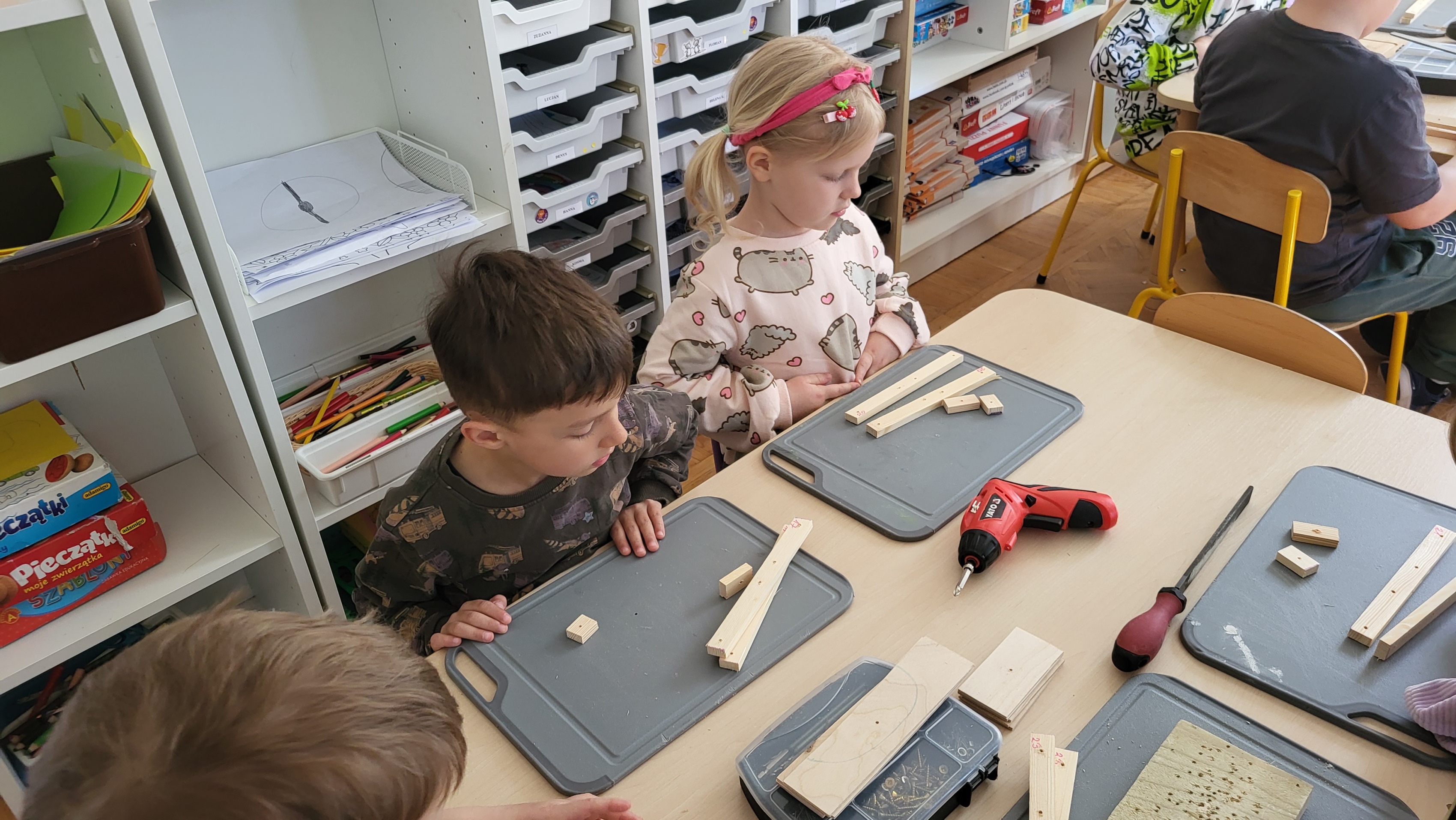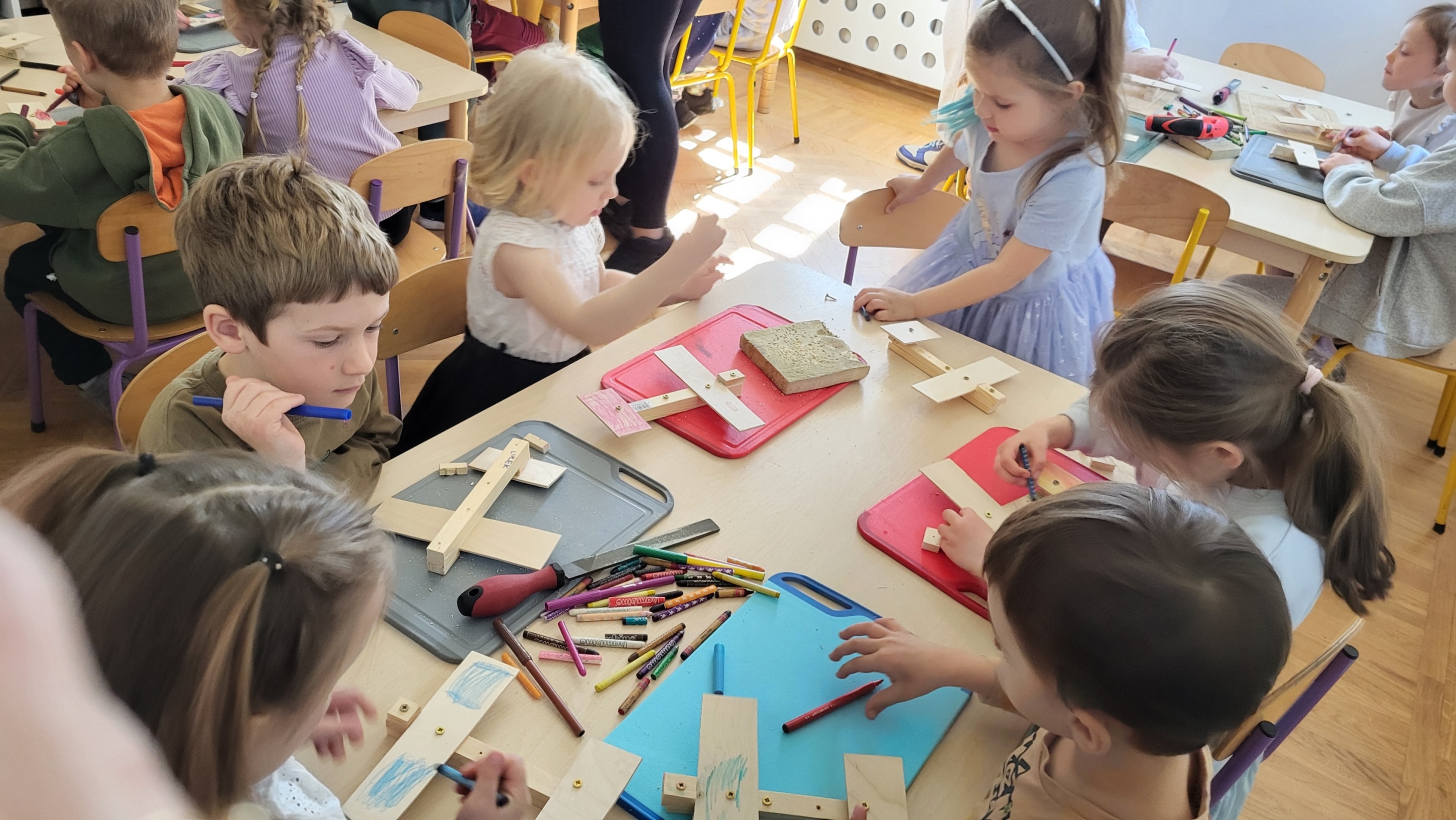 Warsztaty stolarskie to coś więcej niż tylko zabawa drewnem i narzędziami. To prawdziwa przygoda, która wprowadza przedszkolaków w fascynujący świat majsterkowania, a jednocześnie rozwija ich umiejętności w sposób, który trudno osiągnąć w inny sposób. Podczas nich dzieci miały możliwość samodzielnego wykonania samolotu i dekorowania swoich prac. co pobudza ich wyobraźnię i daje poczucie dumy z własnych osiągnięć. Była to to nie tylko nauka, ale przede wszystkim fantastyczna zabawa, która dała dzieciom radość z tworzenia czegoś własnoręcznie. To chwile, które na długo pozostaną w pamięci, a wykonane przez dzieci prace staną się dowodem zdobytych umiejętności.