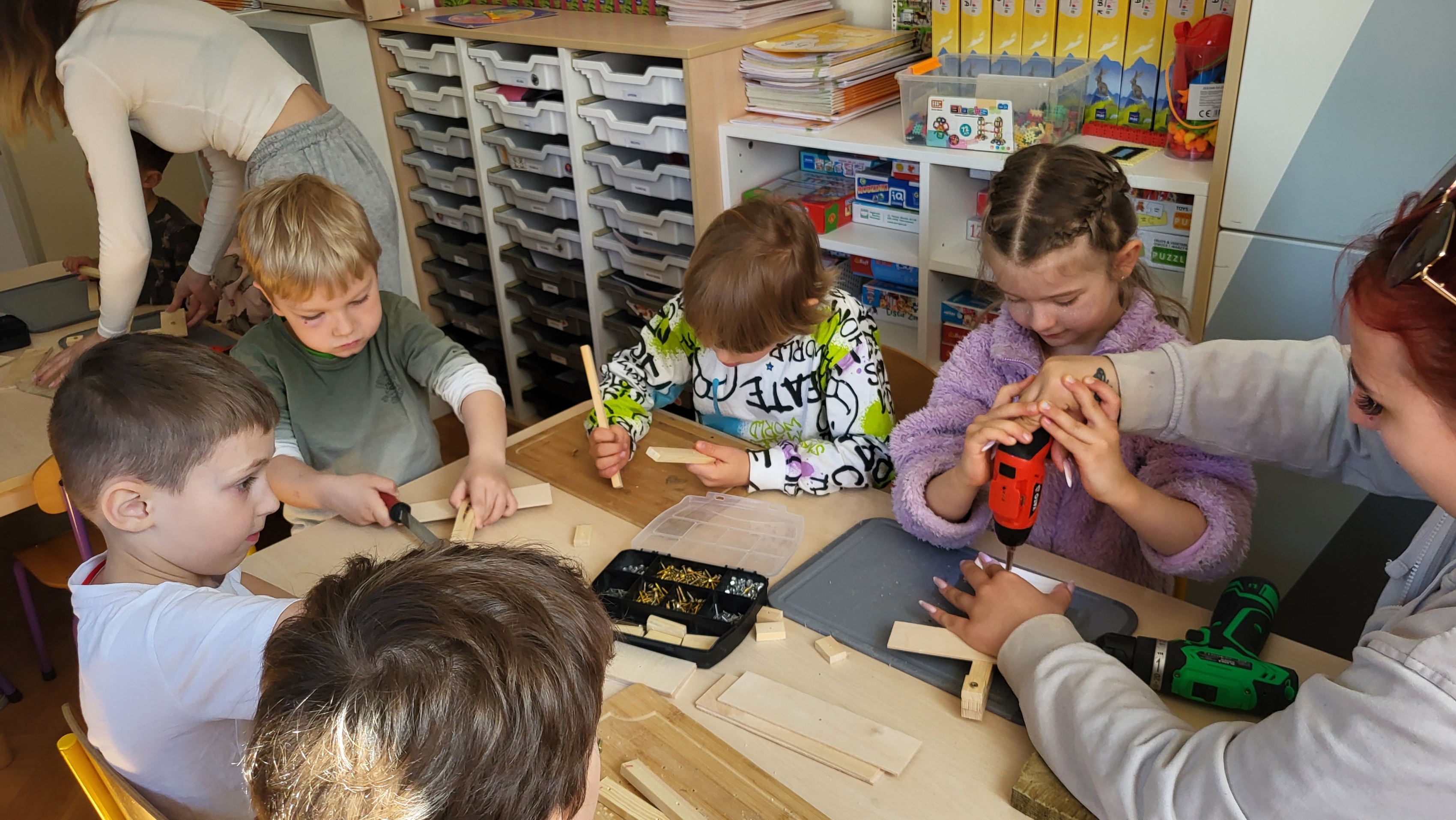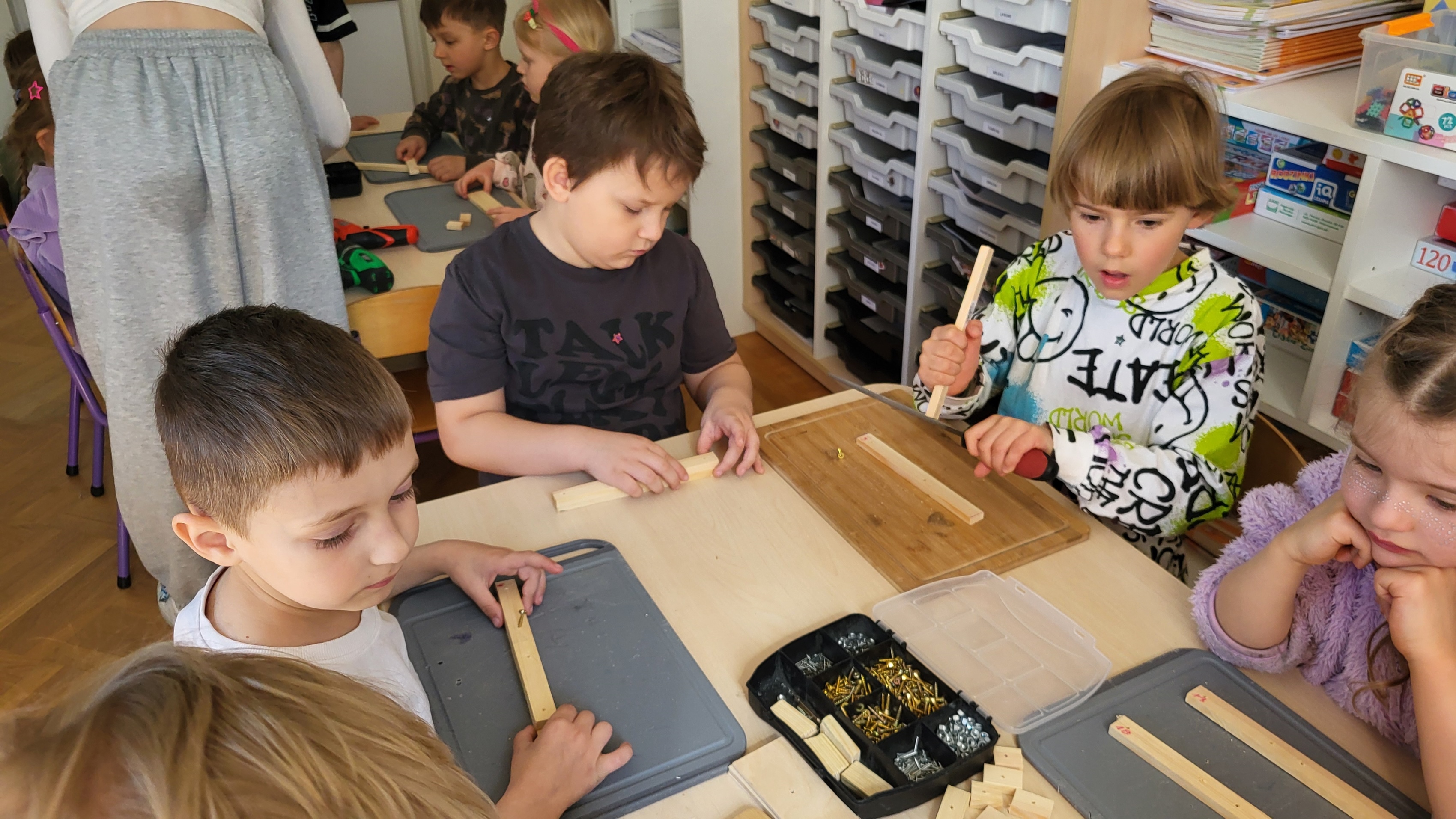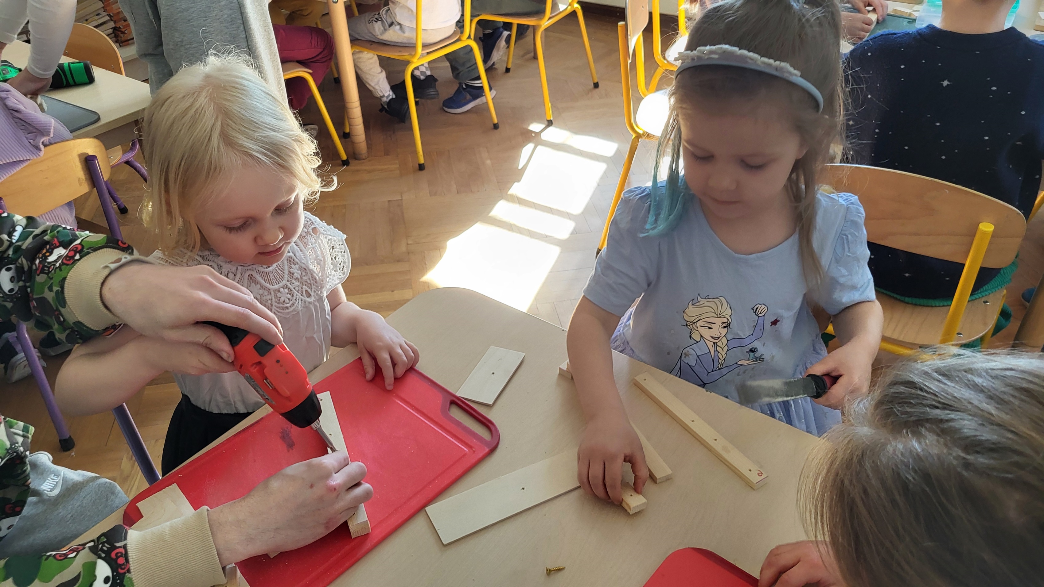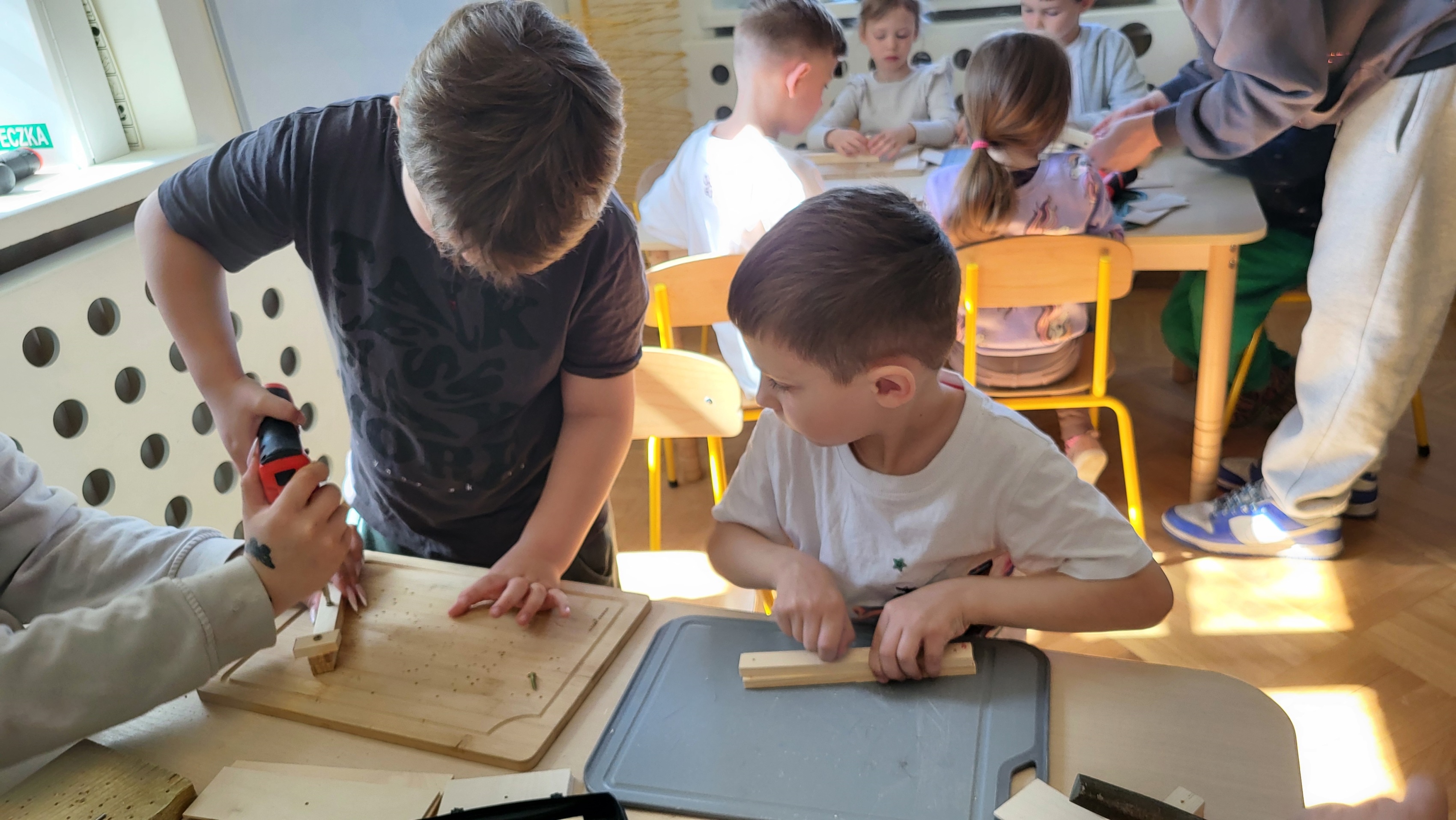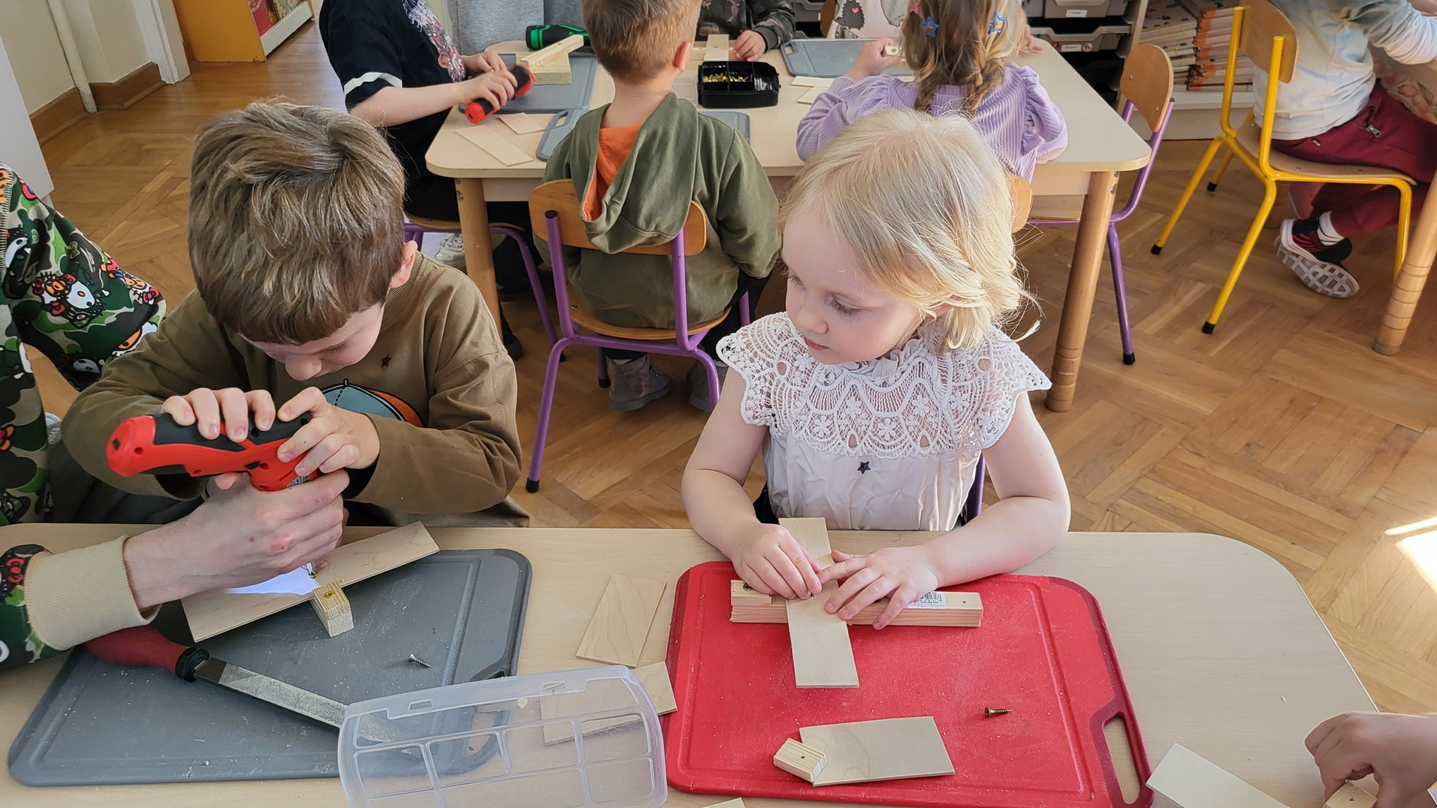 Warsztaty stolarskie to coś więcej niż tylko zabawa drewnem i narzędziami. To prawdziwa przygoda, która wprowadza przedszkolaków w fascynujący świat majsterkowania, a jednocześnie rozwija ich umiejętności w sposób, który trudno osiągnąć w inny sposób. Podczas nich dzieci miały możliwość samodzielnego wykonania samolotu i dekorowania swoich prac. co pobudza ich wyobraźnię i daje poczucie dumy z własnych osiągnięć. Była to to nie tylko nauka, ale przede wszystkim fantastyczna zabawa, która dała dzieciom radość z tworzenia czegoś własnoręcznie. To chwile, które na długo pozostaną w pamięci, a wykonane przez dzieci prace staną się dowodem zdobytych umiejętności.