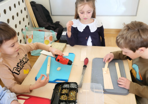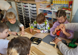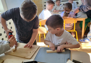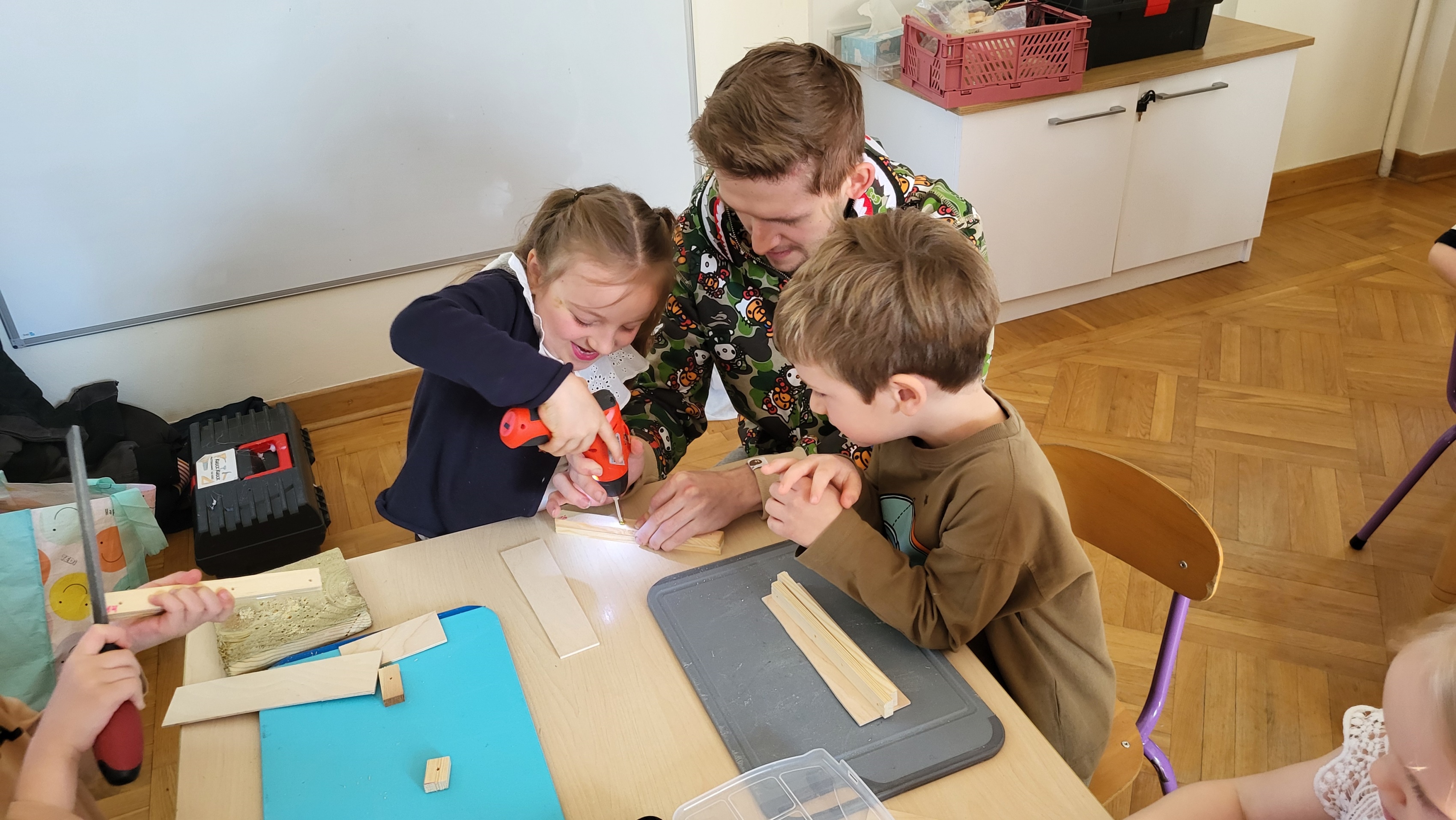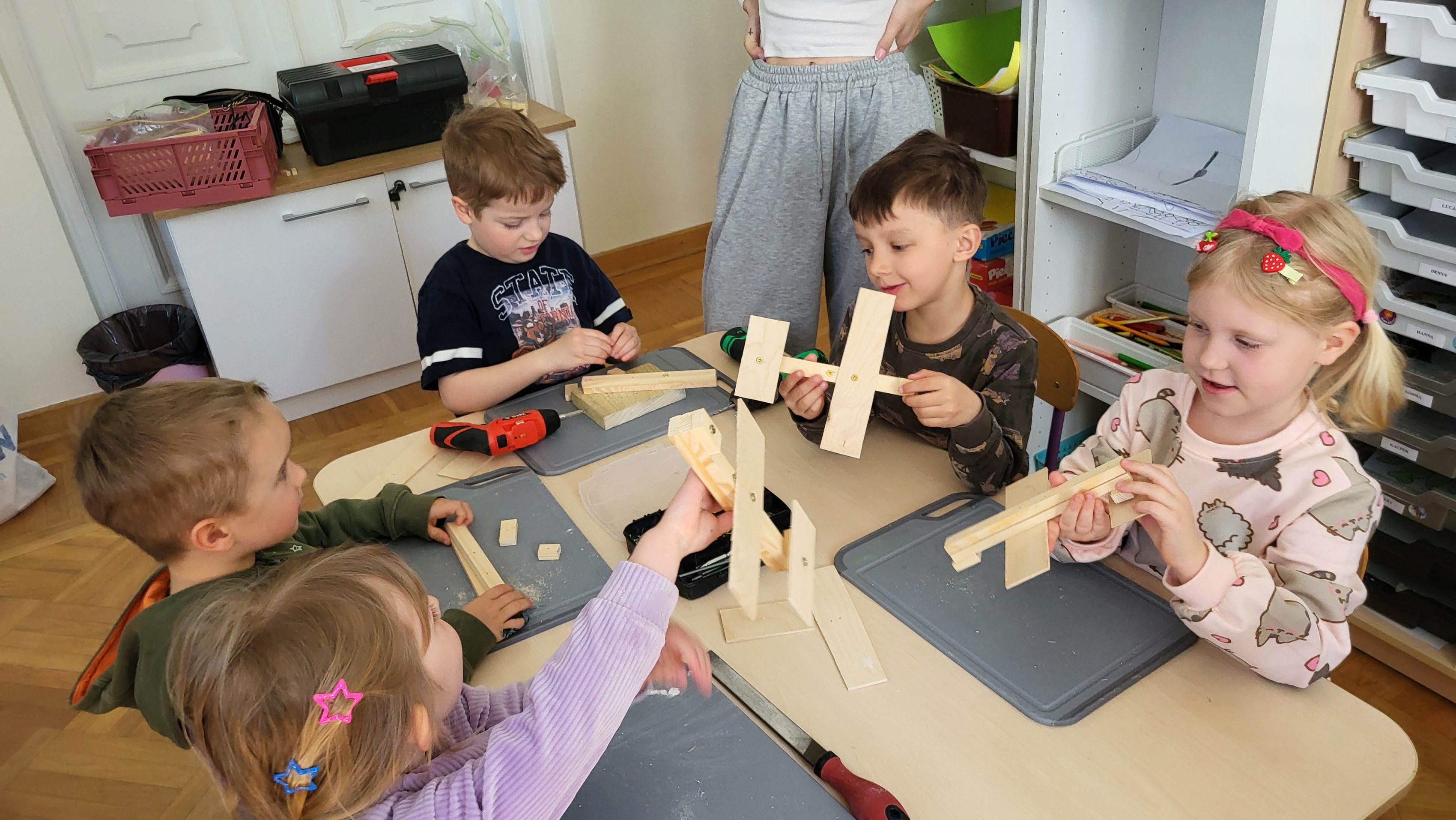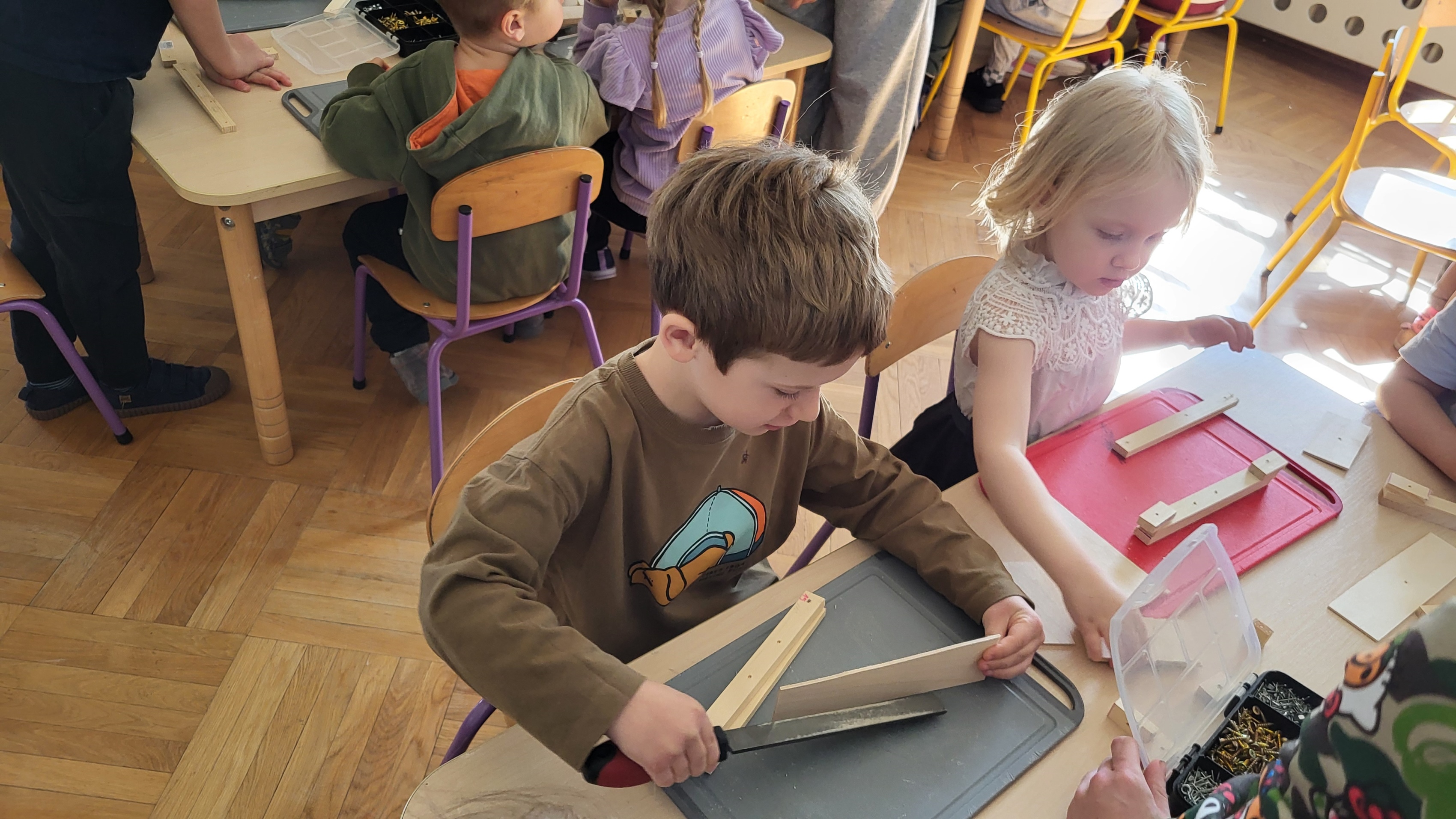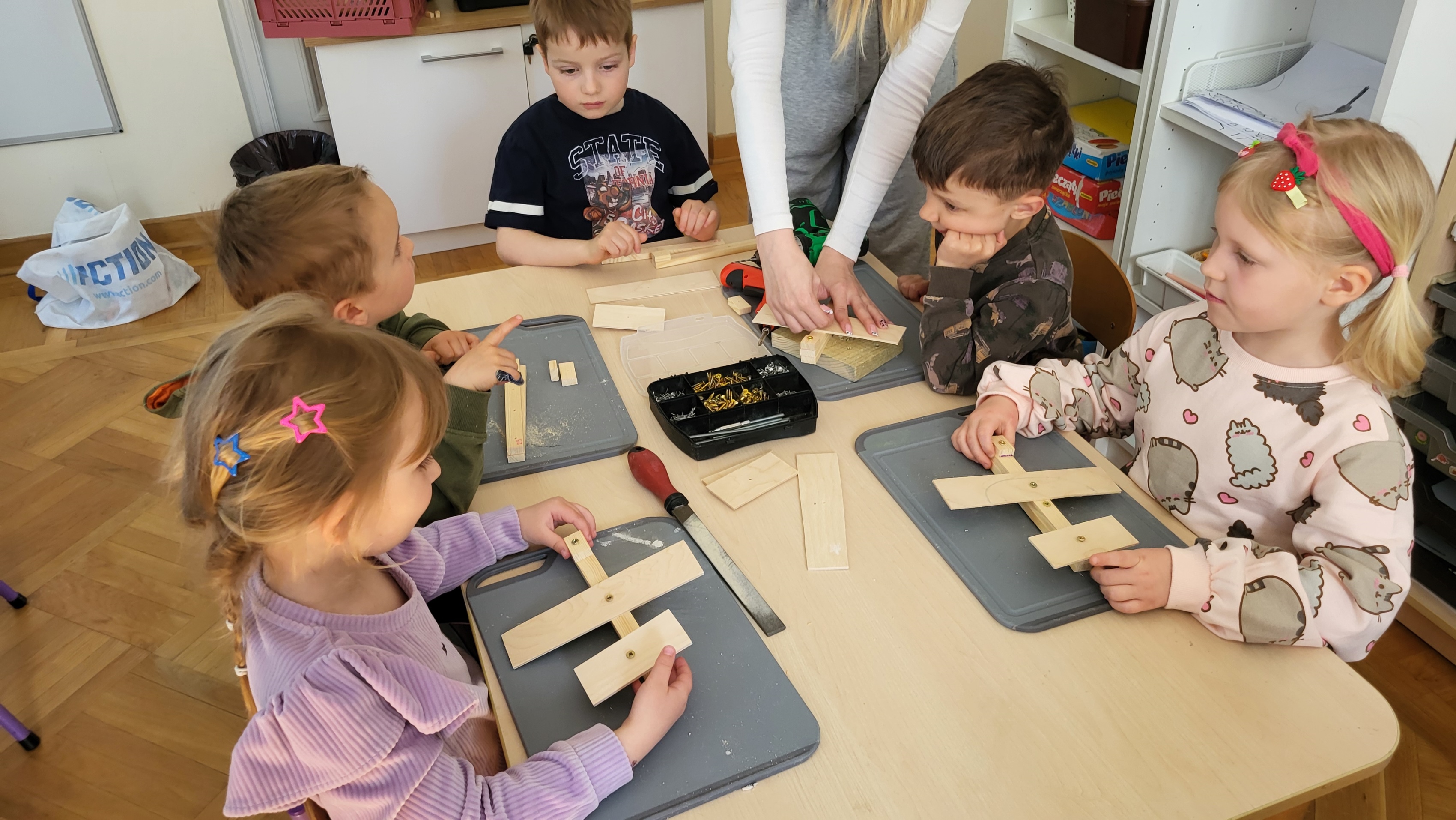 Warsztaty stolarskie to coś więcej niż tylko zabawa drewnem i narzędziami. To prawdziwa przygoda, która wprowadza przedszkolaków w fascynujący świat majsterkowania, a jednocześnie rozwija ich umiejętności w sposób, który trudno osiągnąć w inny sposób. Podczas nich dzieci miały możliwość samodzielnego wykonania samolotu i dekorowania swoich prac. co pobudza ich wyobraźnię i daje poczucie dumy z własnych osiągnięć. Była to to nie tylko nauka, ale przede wszystkim fantastyczna zabawa, która dała dzieciom radość z tworzenia czegoś własnoręcznie. To chwile, które na długo pozostaną w pamięci, a wykonane przez dzieci prace staną się dowodem zdobytych umiejętności.
